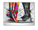 Discover the unique story behind the image on this canvas. One pair of sneakers is full of vibrant colors and strategically placed to make an impact, while the other pair is in black and white, symbolizing the contrast of two individuals coming together in perfect balance.