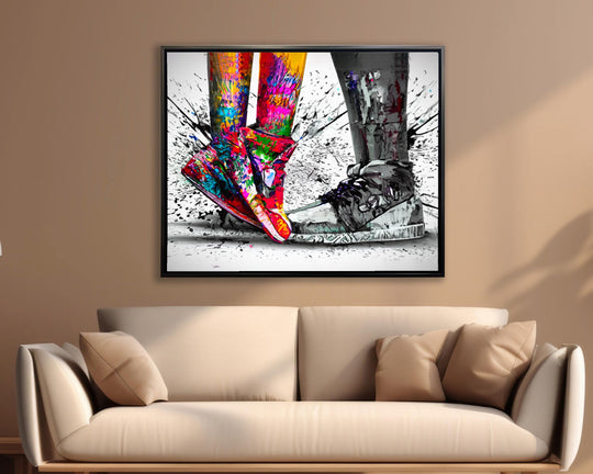 Discover the unique story behind the image on this canvas. One pair of sneakers is full of vibrant colors and strategically placed to make an impact, while the other pair is in black and white, symbolizing...Regular price From $449.00Regular price From $449.00 -