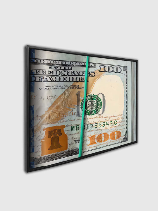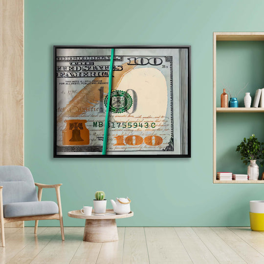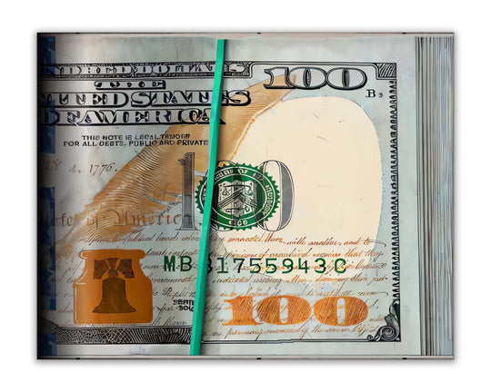 Enhance any room with a touch of humor and style with this 48" x 36" fine art canvas depicting a stack of hundred dollar bills with a green rubber in the center. Perfect for a bedroom...Regular price From $449.00Regular price From $449.00 -