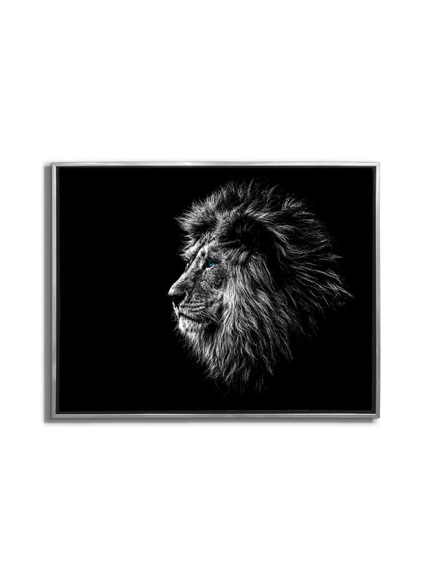 Wildlife Canvas Art-Lions Head Blue Eye in Black and White -Silver varnish