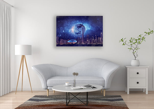 Canvas Palette-Metal aluminum print-Toronto, dark moon with CN Tower-Limited Edition