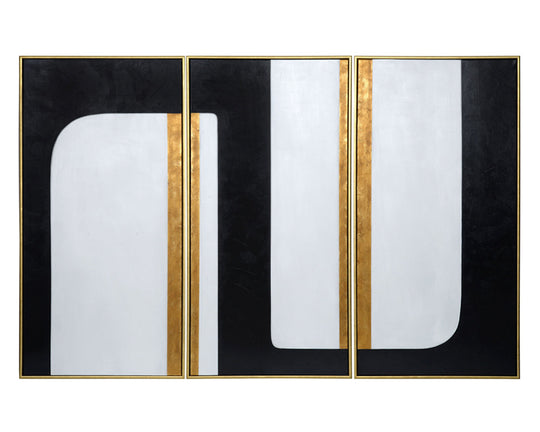 This striking triptych in black, white and gold features a continuous graphic pattern that leads from one painting to the next. Features a gold finished wood floater frame. Each artwork is hand-painted and will feature slight...Sale price $1,685.00Regular price $2,247.00Sale price $1,685.00Regular price $2,247.00 -