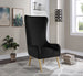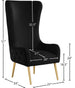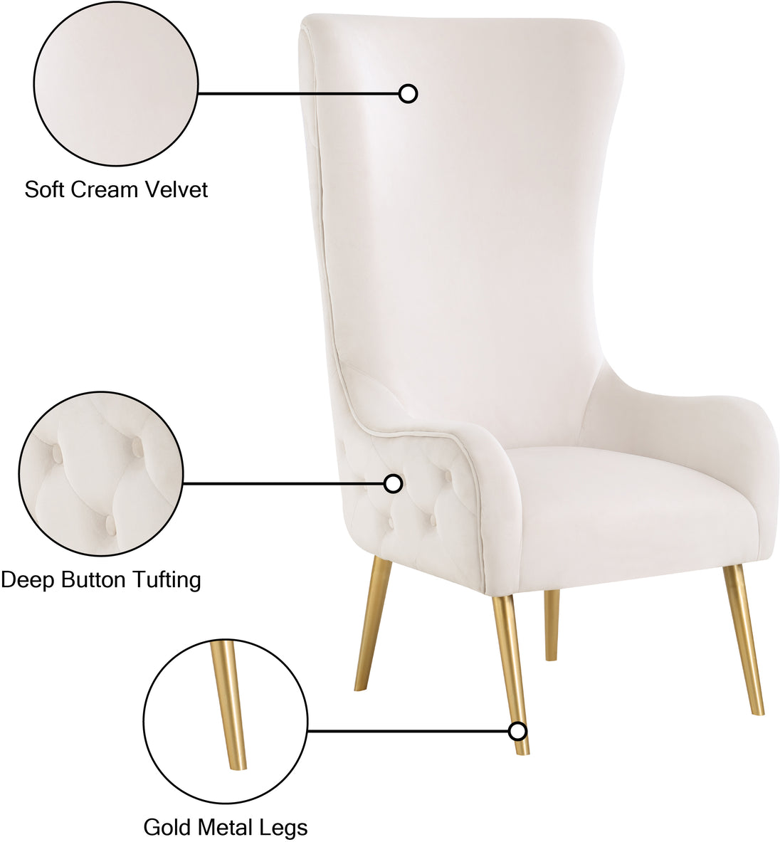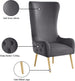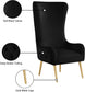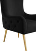 You'll be sitting pretty from the comfortable confines of this Alexander velvet accent chair. An updated take on the classic wingback chair of yesteryear, this accent chair features a fresh new look with soft, luxurious velvet upholstery and deep button tufting along its outer sides and back. Gold metal legs add to its contemporary oomph, ensuring that this chair is well at home in modern decor settings.