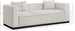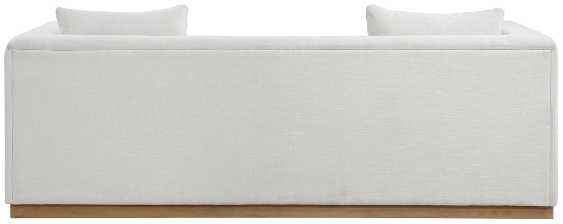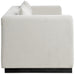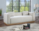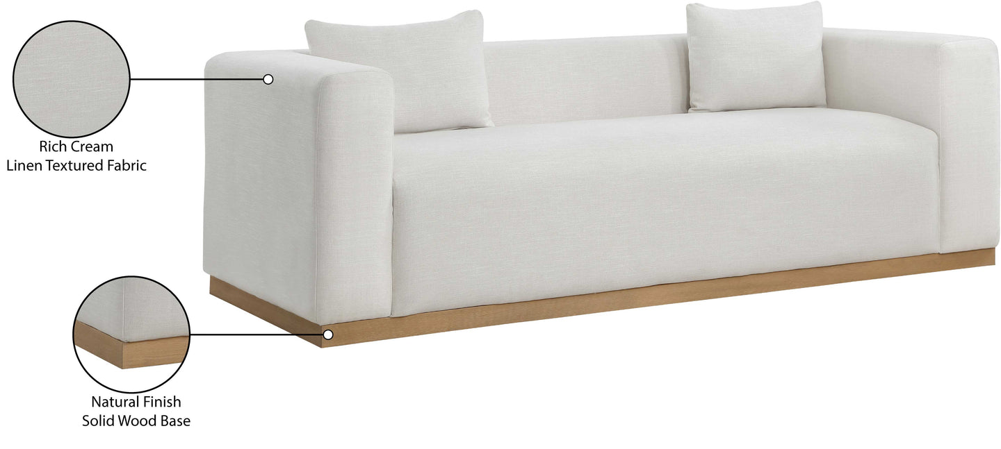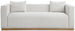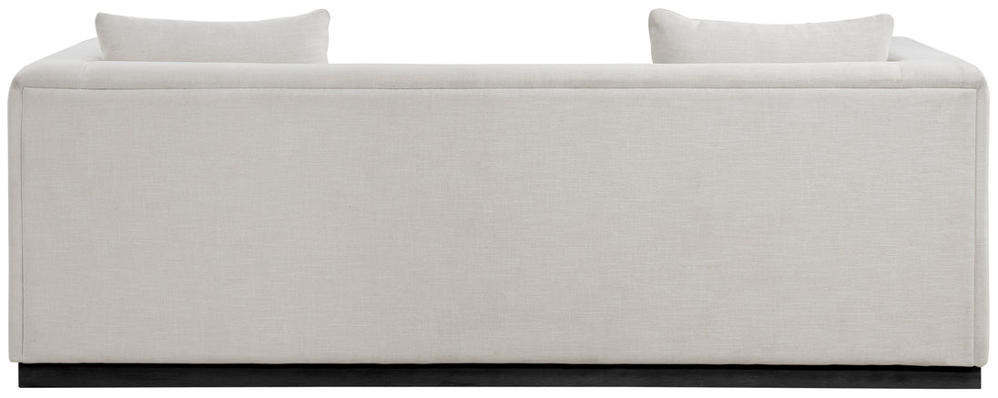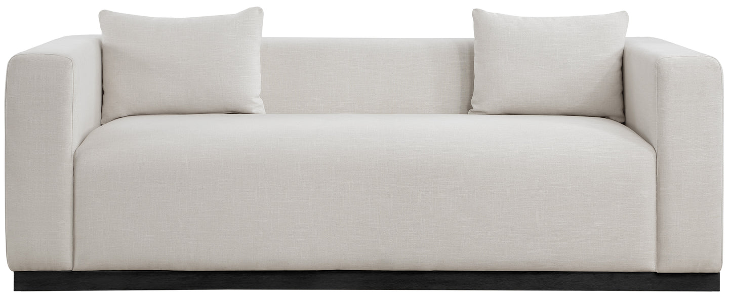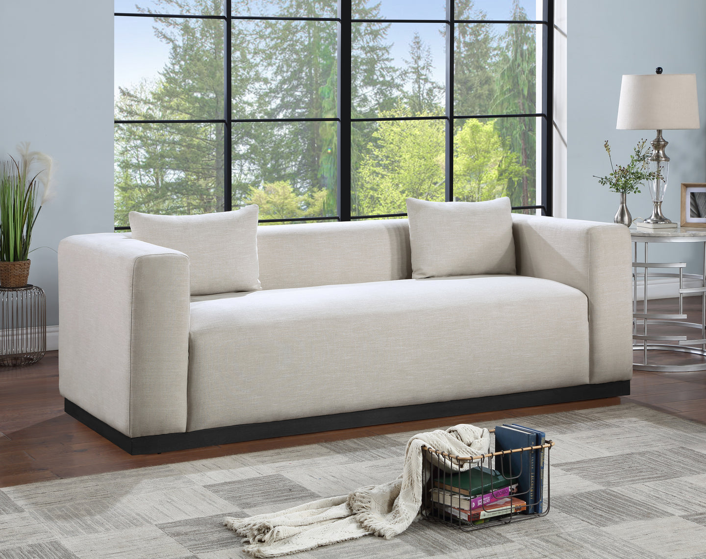 Make this Alfie linen textured fabric living room sofa the center a cozy reading nook. This overstuffed chair is stunning from angles, with its contemporary design elements and chic rich beige color. Plumply stuffed with fluffy fill to create the ultimate space for snuggling up with your favorite reading material or while binging on the latest TV program. The sofa rests on a black finish solid wood base for stability and added contrast with its beige upholstery.