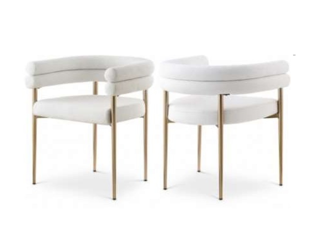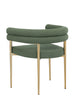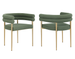 Enhance your dining space with theses exquisite Allure Dining Chairs. This captivating ensemble consists of two dining chairs, radiating contemporary styling that effortlessly blends with most existing interior decors. The plush seating invites you to indulge in luxurious comfort, while the premium fabric cover adds a touch of elegance to the overall design. Adorned with a mesmerizing green hue, these chairs create a visually stunning contrast against the opulent gold-finished metal frames. Every detail of these chairs exudes sophistication, making them the perfect addition to elevate your dining experience to new heights.