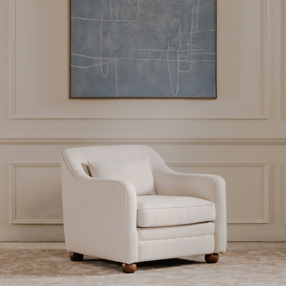 The Amira accent chair's graceful silhouette promises cloud-like comfort, inviting you to sink in and unwind. Upholstered in durable polyester fabric, and accentuated with a piping details it marries beauty with practicality. The high back curves to embrace, while gentle flared arms and plush lumbar cushion offer enhanced comfort.