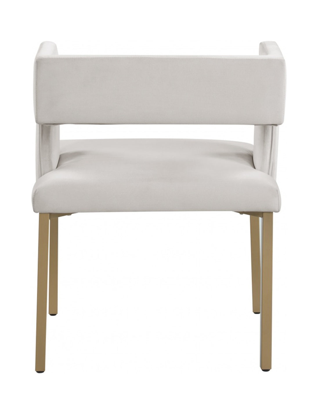 Introducing the elegant and sophisticated Anthony Dining Chair, a stunning set of 2 chairs designed to elevate your dining experience. With its contemporary styling and luxurious features, this chair set is sure to impress your guests and add a touch of glamour to your dining space. Each set includes two beautifully crafted chairs that boast a perfect blend of style and comfort. The sleek and modern design is complemented by the splayed gold-finished legs, which not only provide stability but also add a touch of opulence to the overall aesthetic. With its premium fabric cover, the luscious velvet upholstery creates a plush seating experience, inviting you to sit back and relax while enjoying your meals. The fabric is not only visually appealing but also feels incredibly soft to the touch, adding a sense of luxury to every dining occasion. Whether you're hosting a formal dinner party or enjoying a casual family meal, the Anthony Dining Chair is designed to impress. Its contemporary styling seamlessly blends with various interior design themes, making it a versatile choice for any dining room.