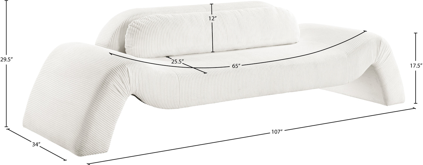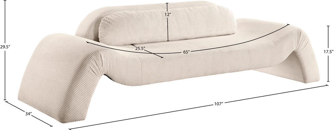 Dare to be different with the Austin beige corduroy sofa. Its avant-garde design and luxurious corduroy upholstery offer a truly unexpected seating experience. The sofa is a modern marvel that redefines comfort and style with its innovative design to create a truly unforgettable piece.