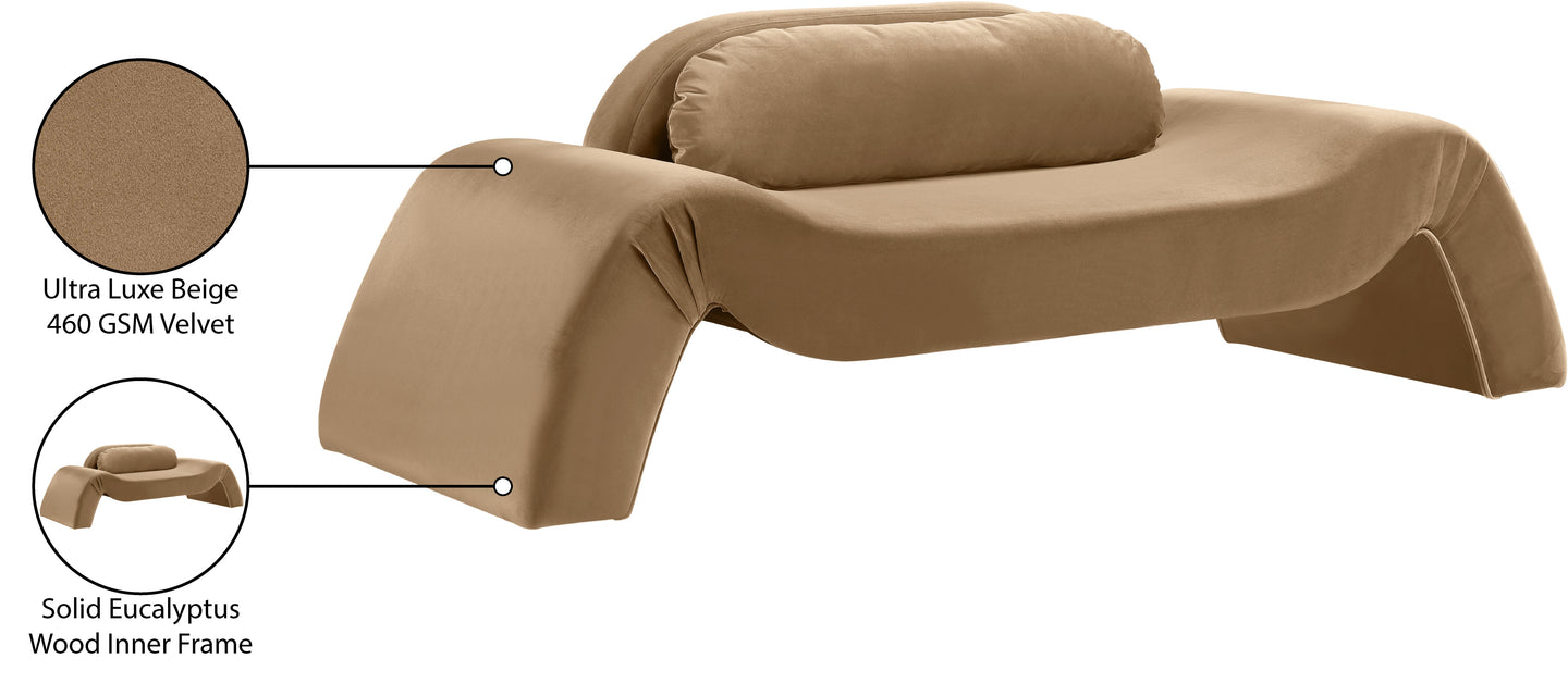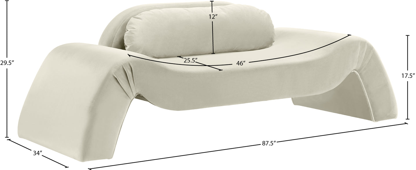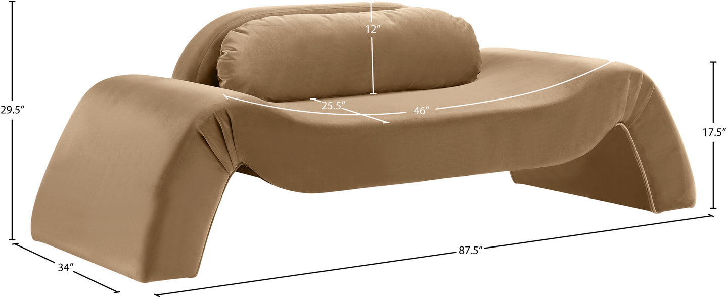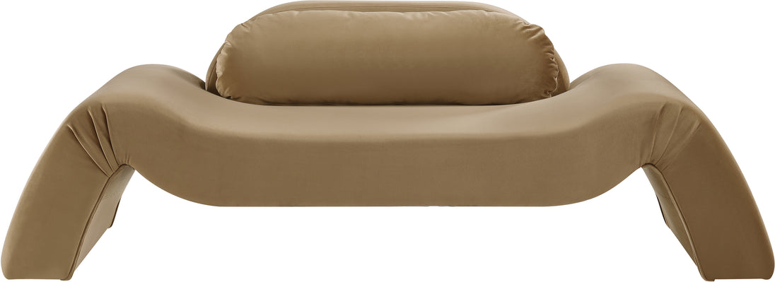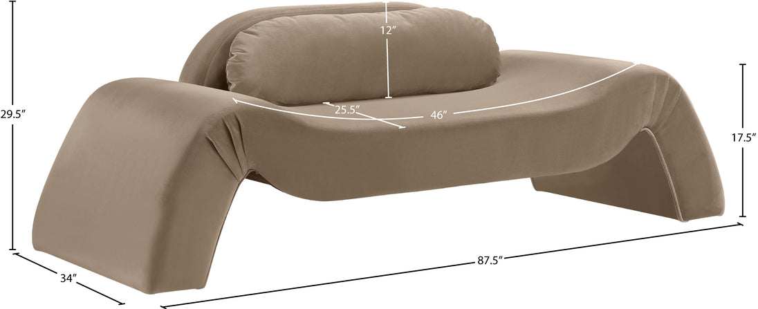Dare to be different with the Austin beige velvet loveseat. Its avant-garde design and luxurious velvet upholstery offer a truly unexpected seating experience. The loveseat is a modern marvel that redefines comfort and style with its innovative design to create a truly unforgettable piece.