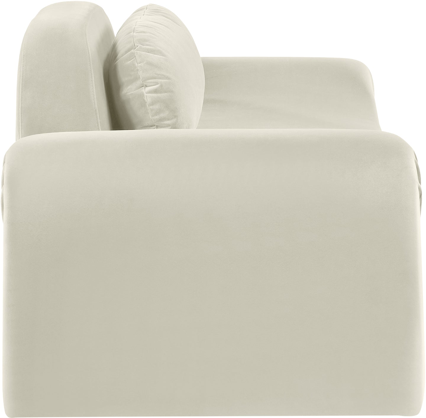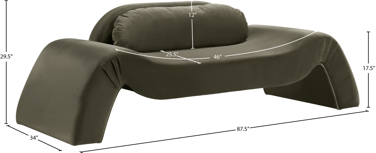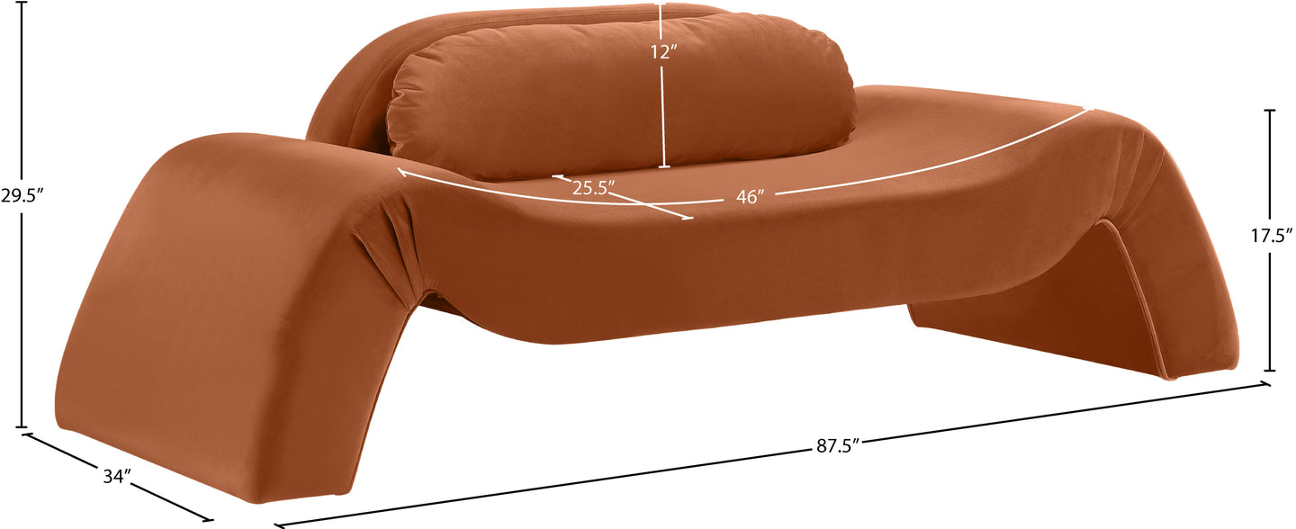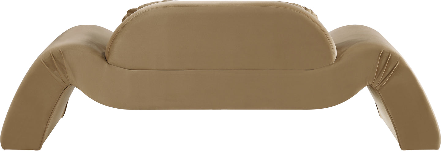 Dare to be different with the Austin beige velvet loveseat. Its avant-garde design and luxurious velvet upholstery offer a truly unexpected seating experience. The loveseat is a modern marvel that redefines comfort and style with its innovative design to create a truly unforgettable piece.
