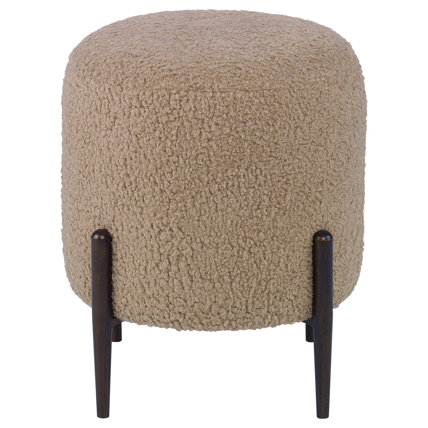 This plush ottoman is covered in a luxurious latte faux shearling, suspended within dark bronze finished metal legs. Versatile and stylish, this piece can be used as a seat or footrest, grouped together or as a singular accent piece.
