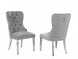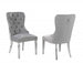 The elegant but durable polyester fabric features a luxurious velvety finish for an inviting look and feel. Diamond tufted accents on the comfortably cushioned seat back are a handsome complement to the sophisticated and sturdy nail-head trim. A convenient chrome-plated pull handle on the back adds modern appeal and makes it easy to re-position this dining chair as needed.