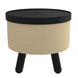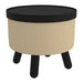 Betsy Round Storage Ottoman with Tray in Beige and Black