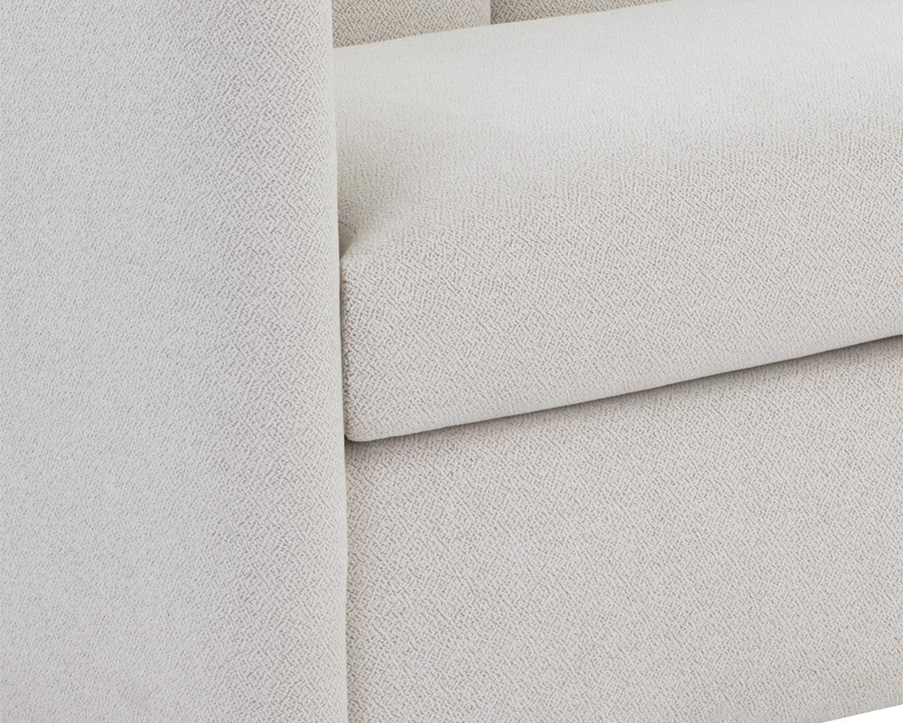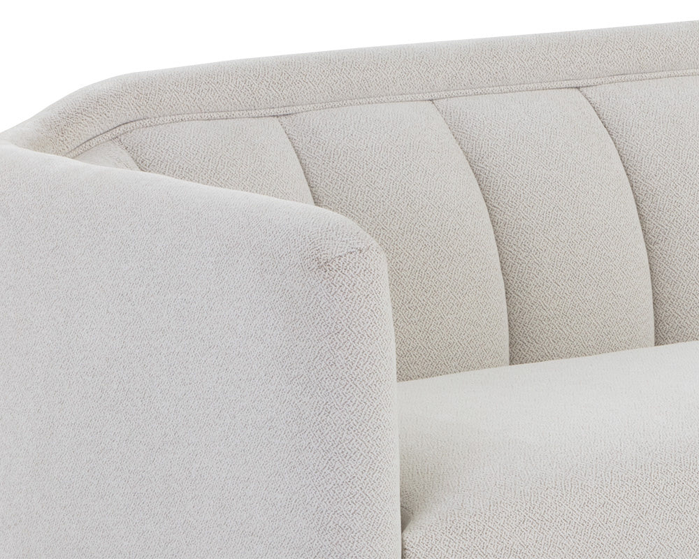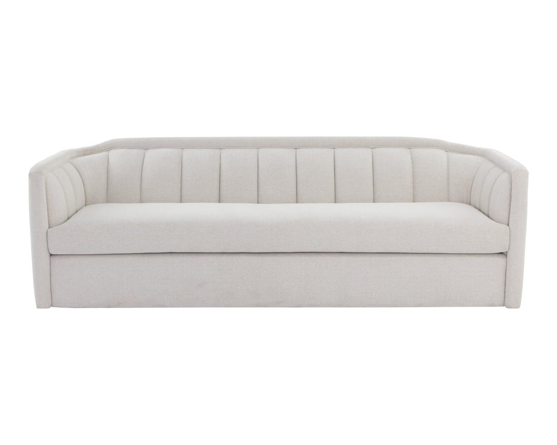 Introduce lavish comfort to any space with this contemporary sofa. Upholstered in alaska greige performance fabric with vertical tufting on the interior. Performance fabric is moisture repellent, durable and easy to clean.