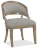 This lyrical silhouette offers comforting style with its neutral palette and textural blend, combining a soft gray Antwerp 100% Linen fabric trimmed in gimp welt with tiny nailheads, with an Antique Milk Paint finish. The nearly opaque milk-colored paint is applied over light brown for a brushstroke effect, filled with character.