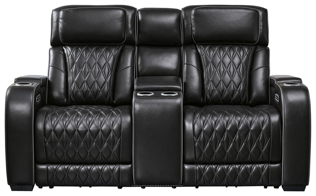 Boyington - Power Reclining Loveseat with Console/ Adj Headrest - Black