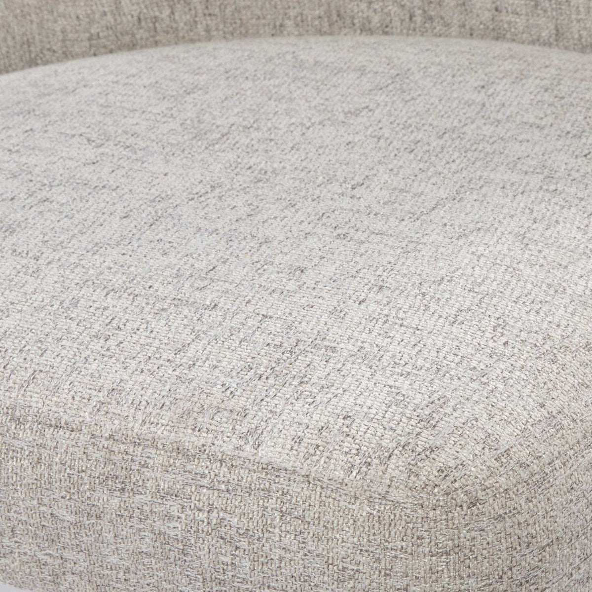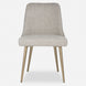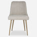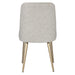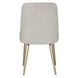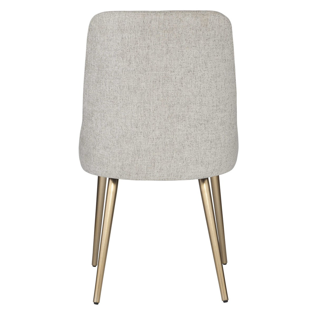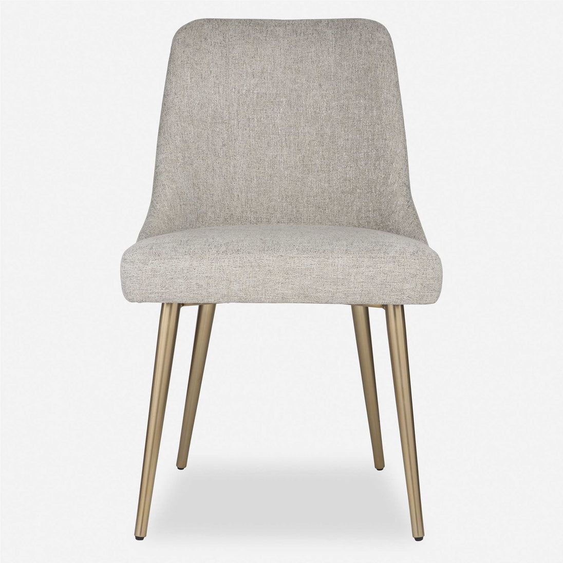 Gently sloped modern lines paired with tapered metal legs in brushed gold. Upholstered in a heathered gray polyester fabric. Seat height is 19".