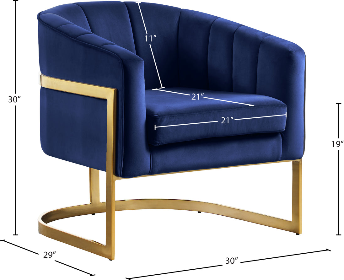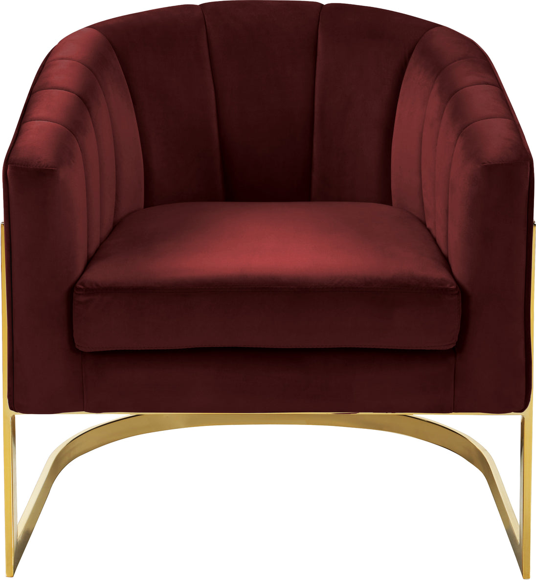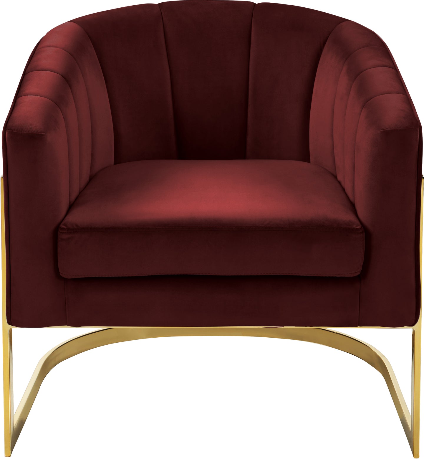 Elegant and eye-catching, the stunning Carter Chair from Meridian Furniture is the perfect addition to any space. Rich velvet covers the plush, comfortable seat, padded with high-density foam. Strength is offered by the stunning Stainless Steel legs, which feature a beautiful Gold finish.