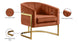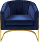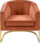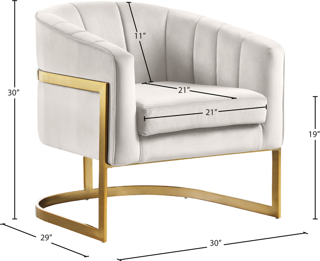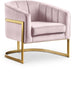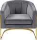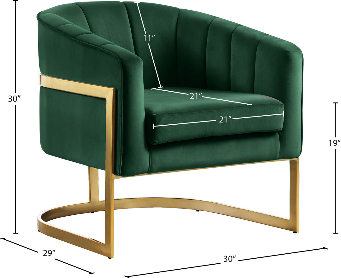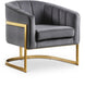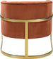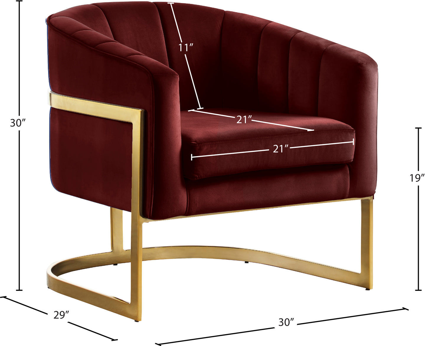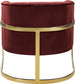 Elegant and eye-catching, the stunning Carter Chair from Meridian Furniture is the perfect addition to any space. Rich velvet covers the plush, comfortable seat, padded with high-density foam. Strength is offered by the stunning Stainless Steel legs, which feature a beautiful Gold finish.