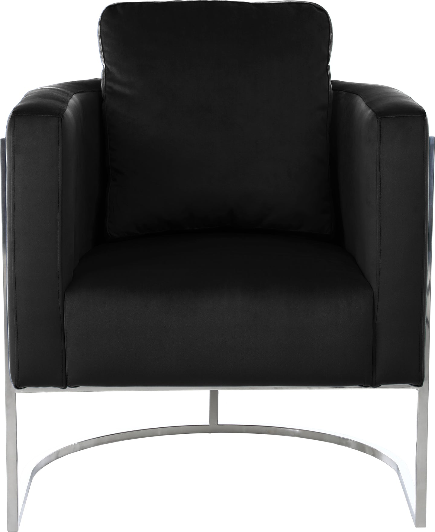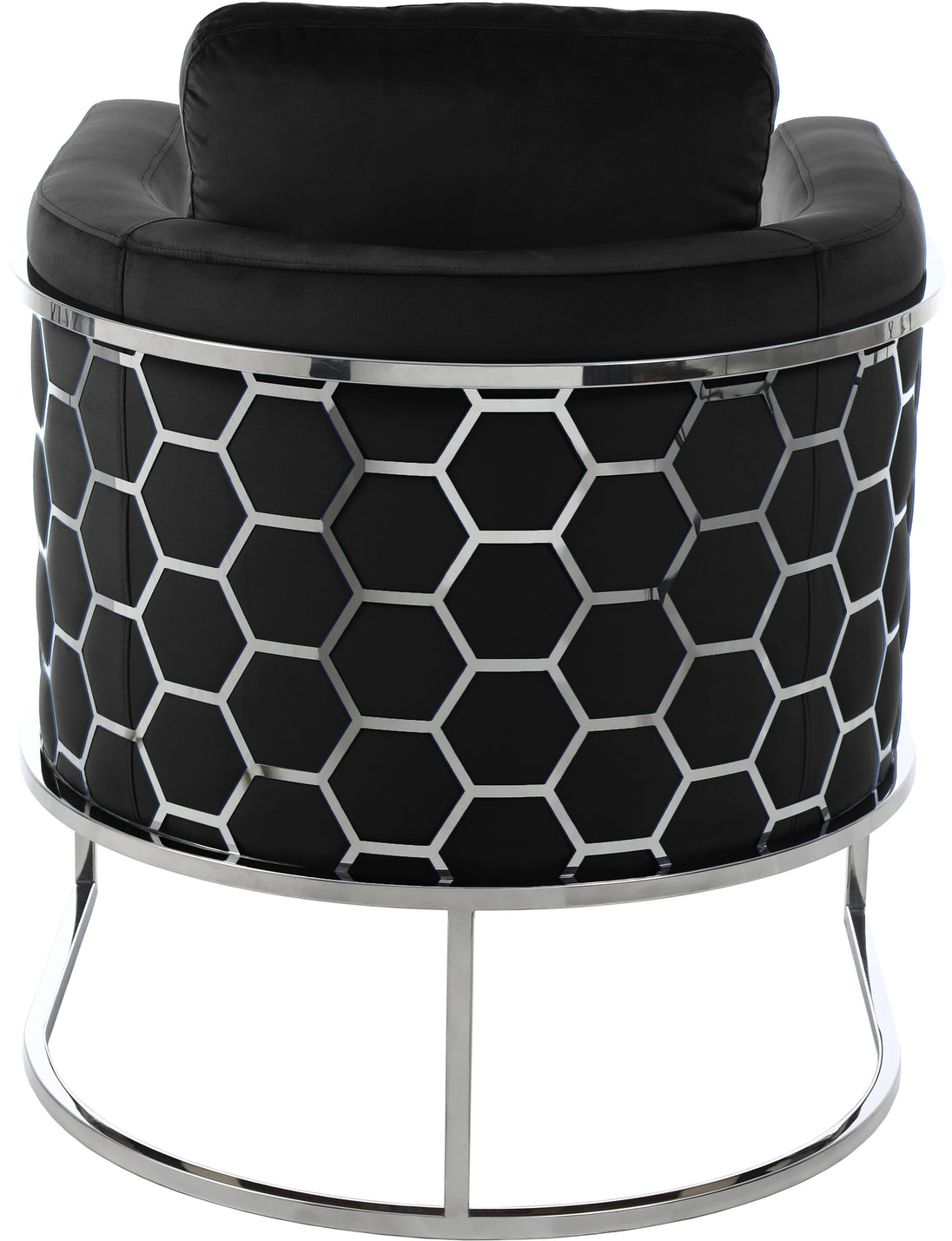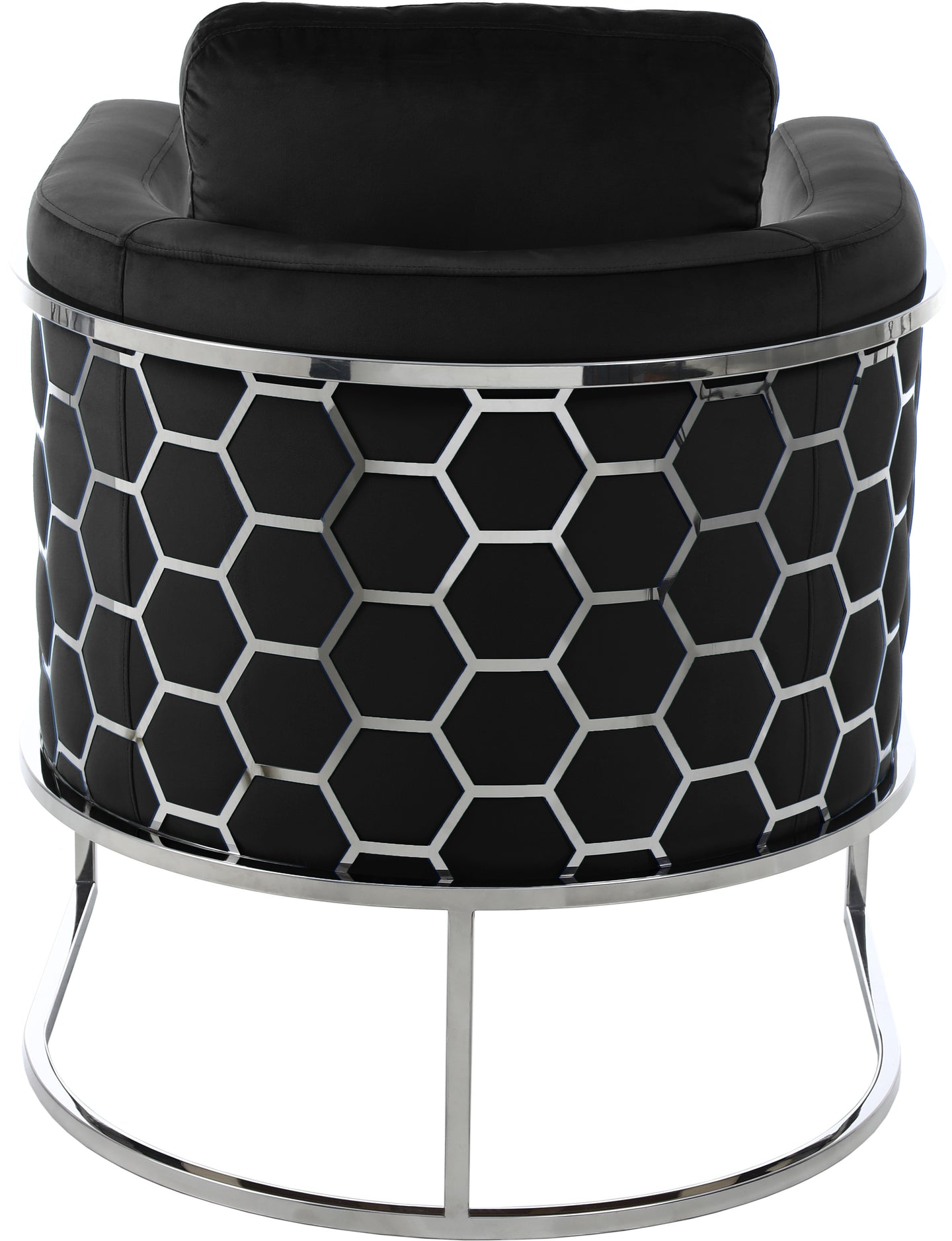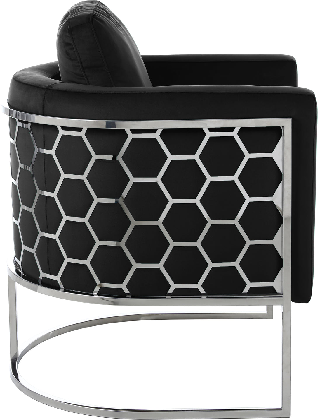Bring modernity to the forefront with the addition of this Casa velvet chair. Destined to become the most-talked-about addition to your room, this eye-grabbing chair is an attention-getter from all angles. Its soft black velvet upholstery is touchably soft and feels great against the skin, and its chrome iron metal frame featuring a honeycomb pattern lends the chair an up-to-the-minute feel. Pair it with other items in the Casa collection for a streamlined look.