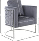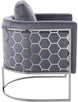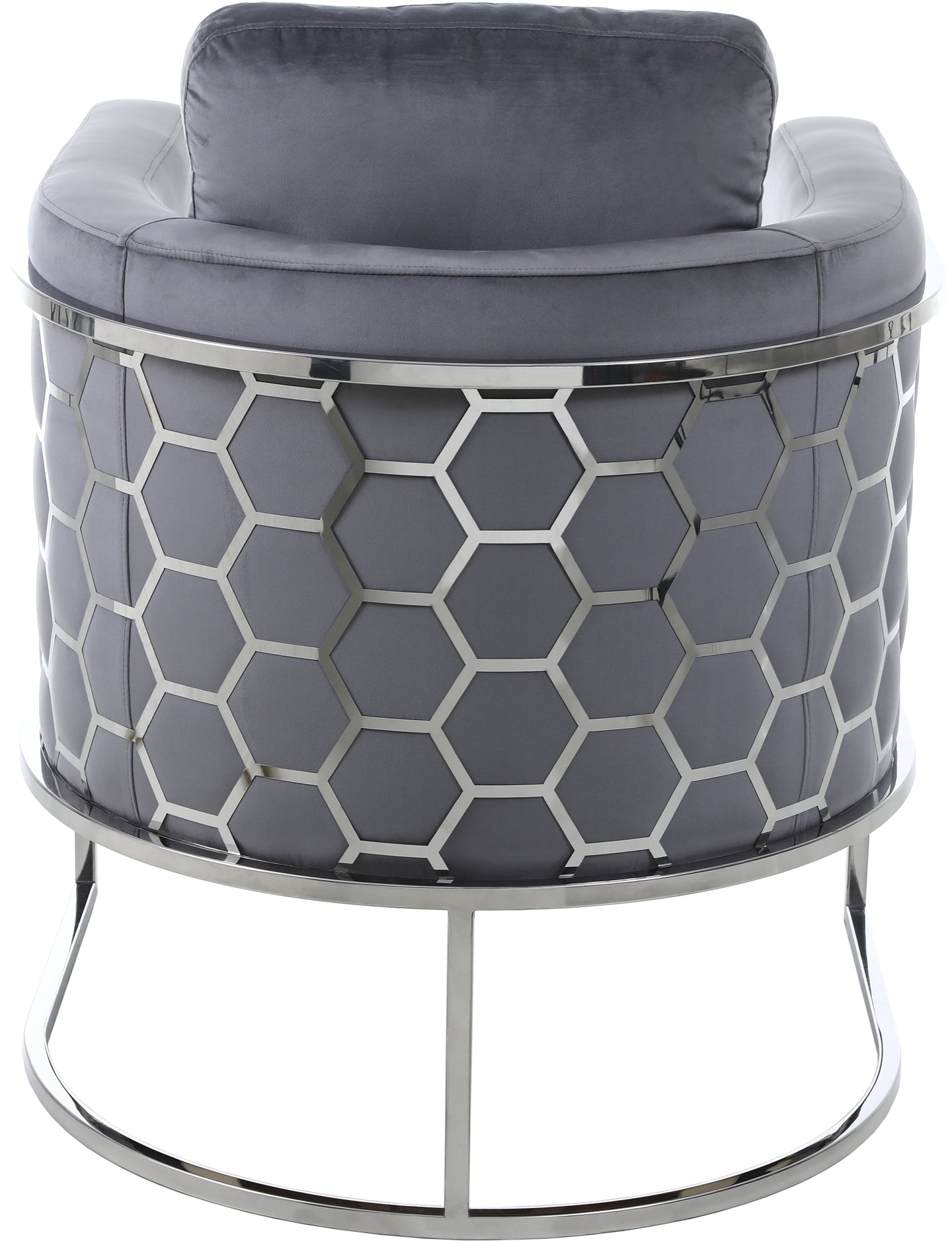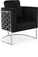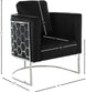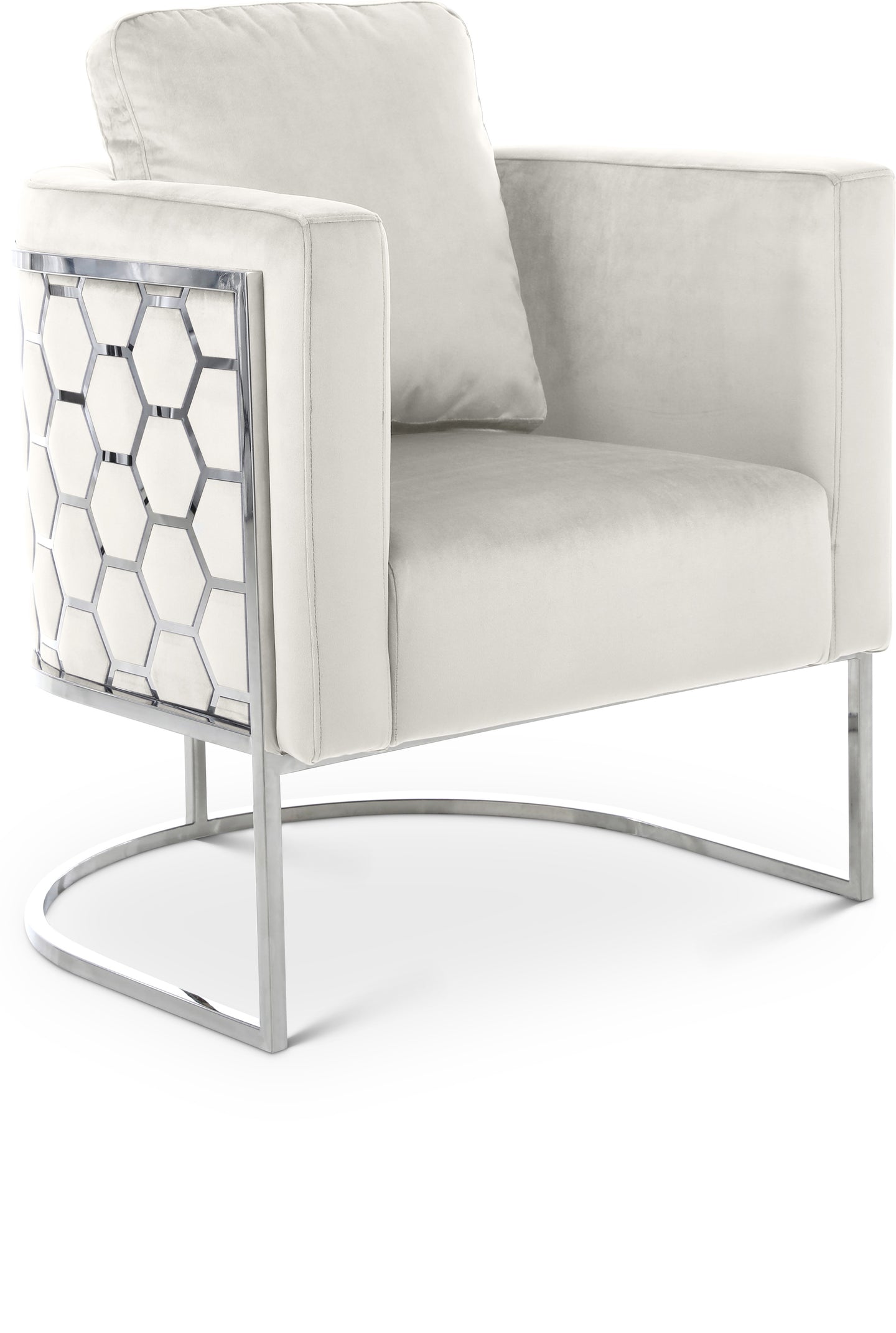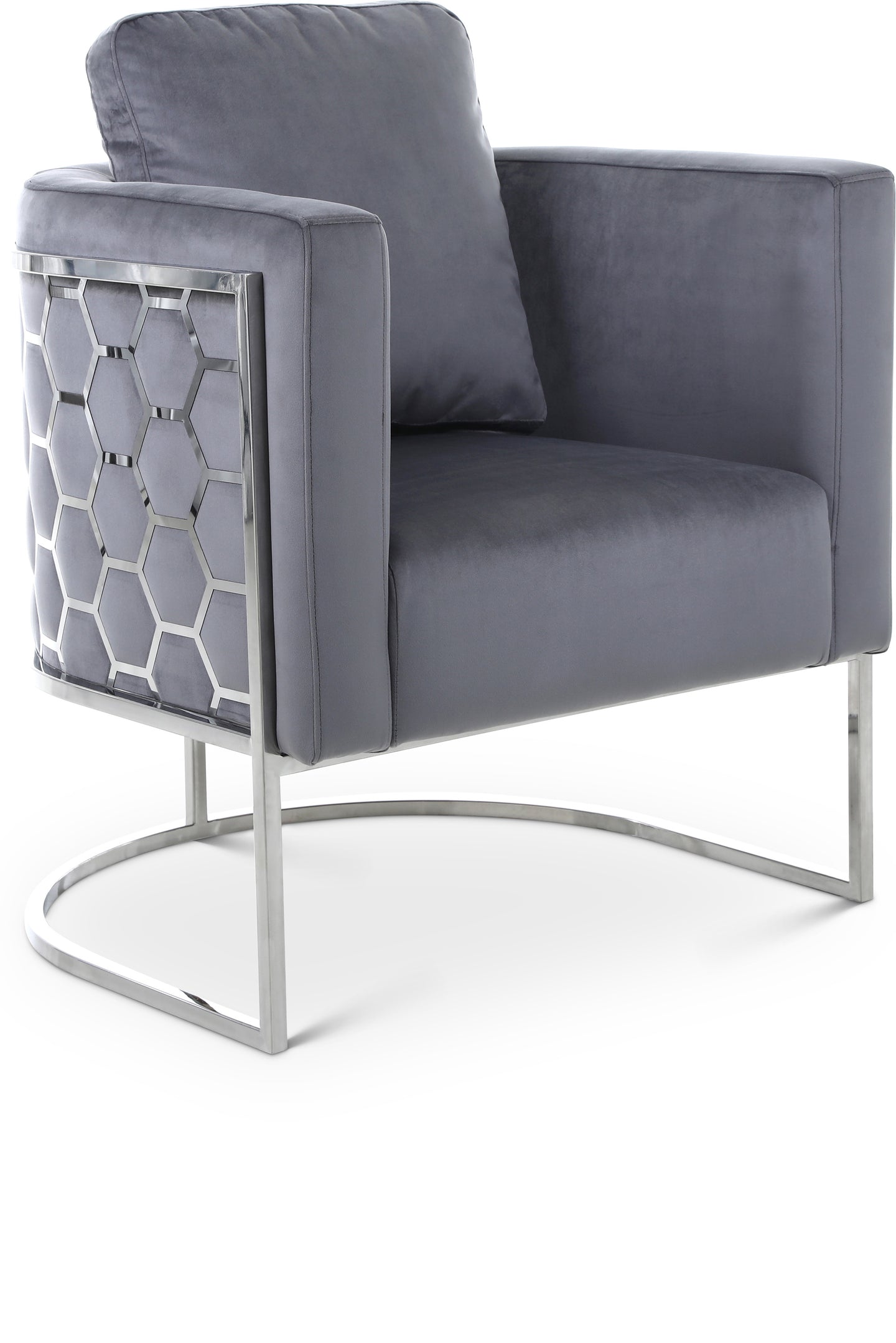Bring modernity to the forefront with the addition of this Casa velvet chair. Destined to become the most-talked-about addition to your room, this eye-grabbing chair is an attention-getter from all angles. Its soft black velvet upholstery is touchably soft and feels great against the skin, and its chrome iron metal frame featuring a honeycomb pattern lends the chair an up-to-the-minute feel. Pair it with other items in the Casa collection for a streamlined look.
