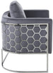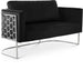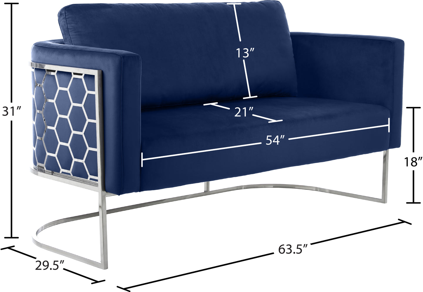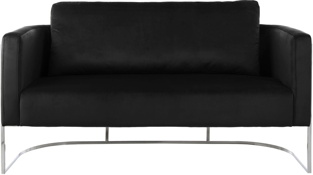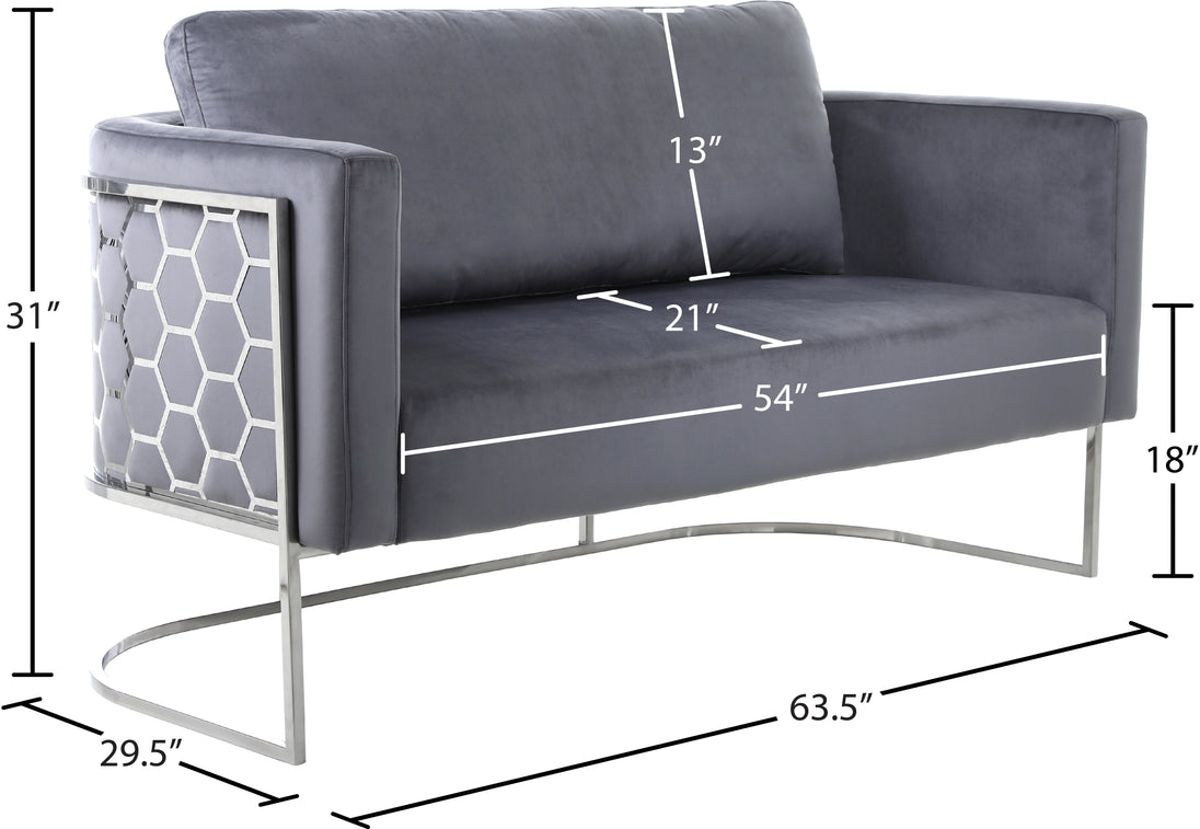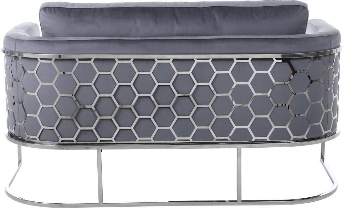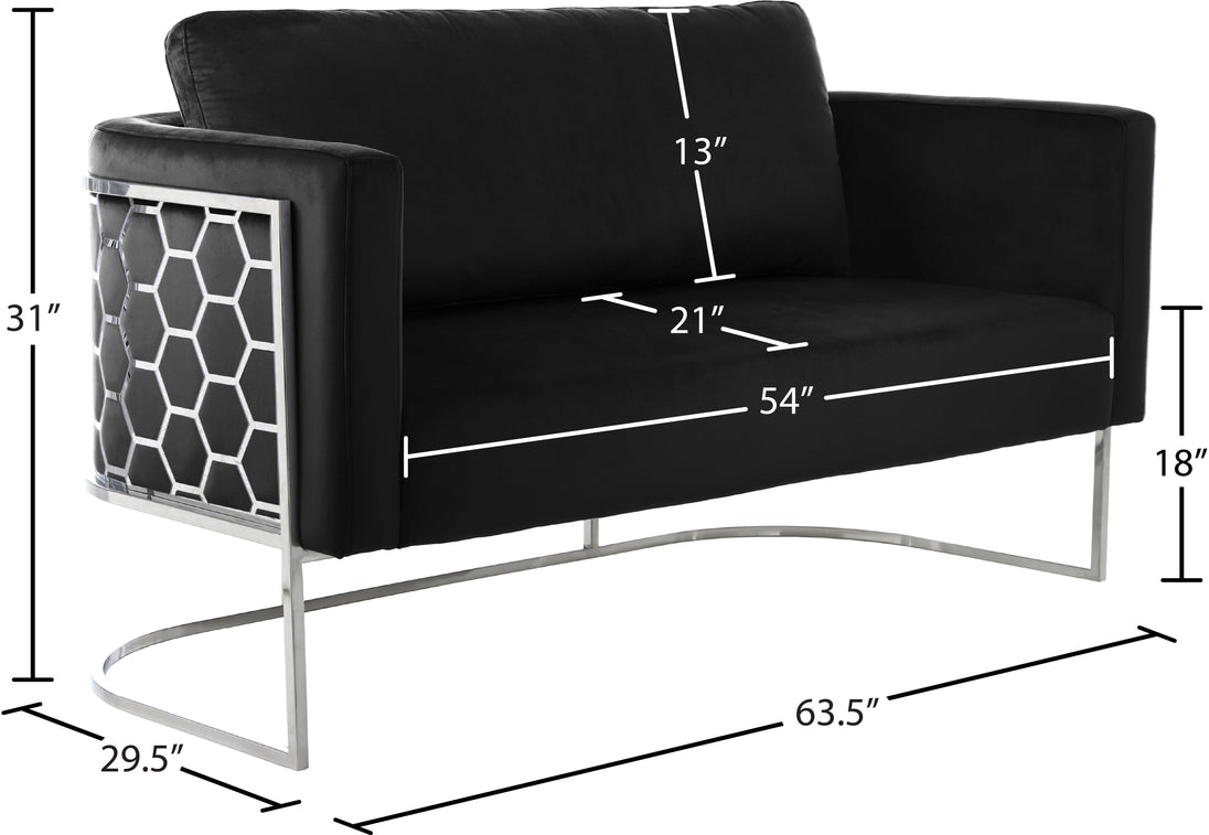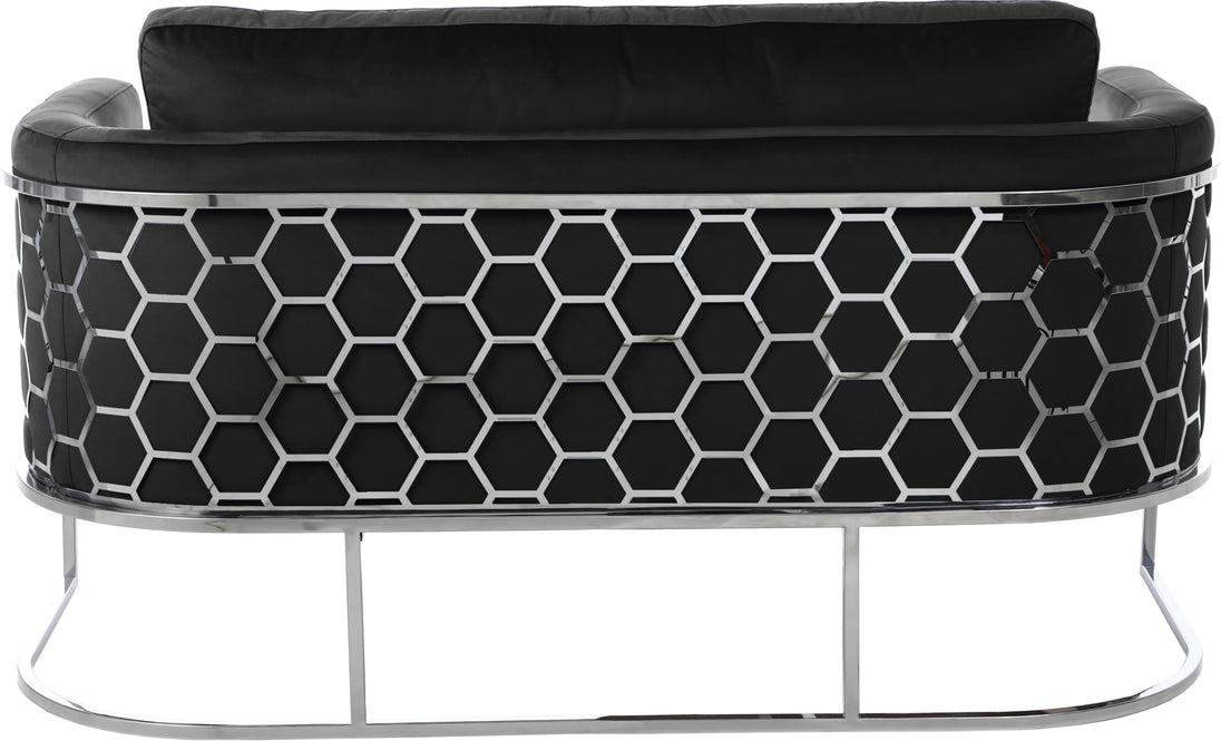 Bring modernity to the forefront with the addition of this Casa velvet chair. Destined to become the most-talked-about addition to your room, this eye-grabbing loveseat is an attention-getter from all angles. Its soft black velvet upholstery is touchably soft and feels great against the skin, and its chrome iron metal frame featuring a honeycomb pattern lends the chair an up-to-the-minute feel. Pair it with other items in the Casa collection for a streamlined look.