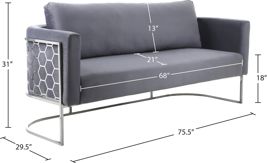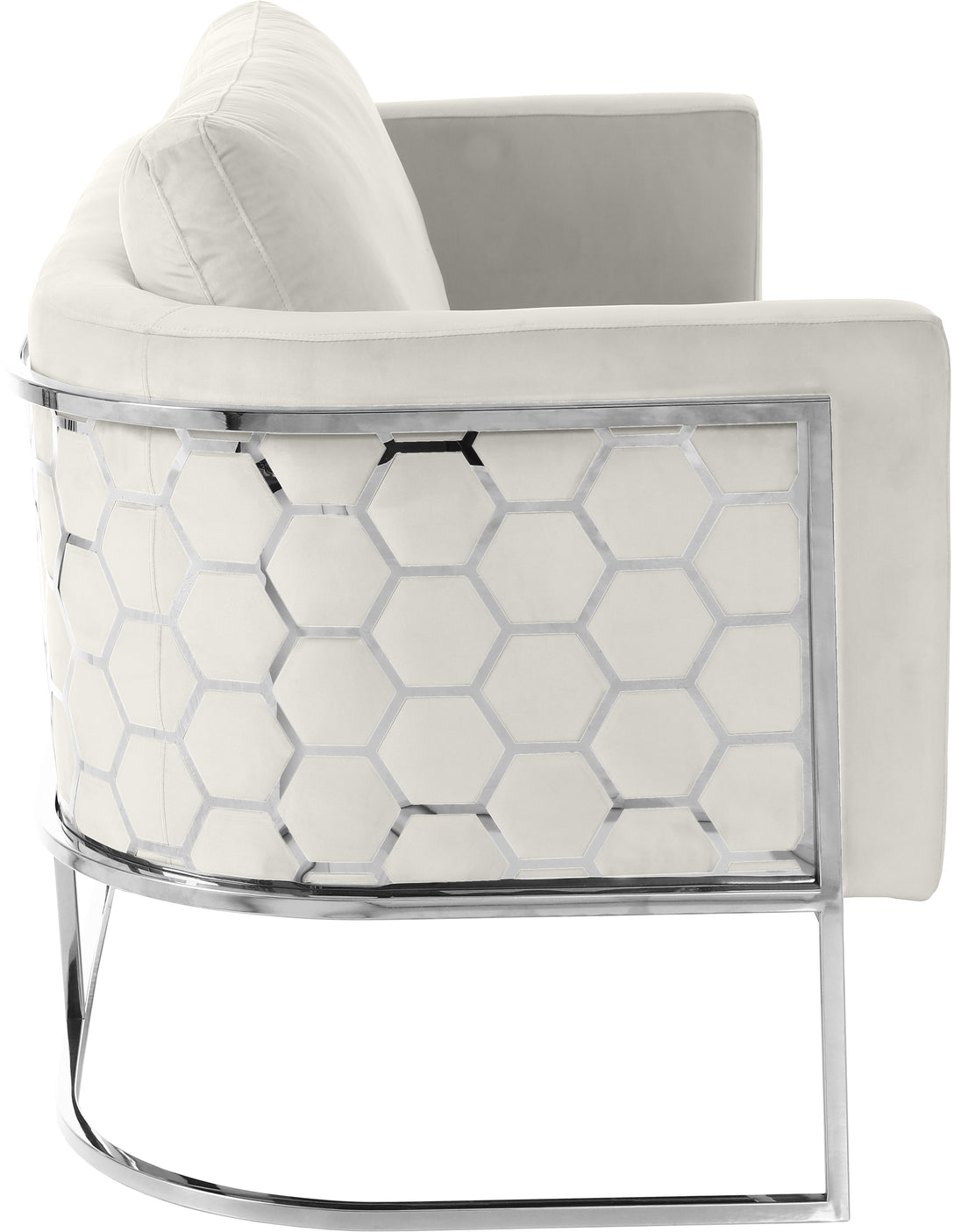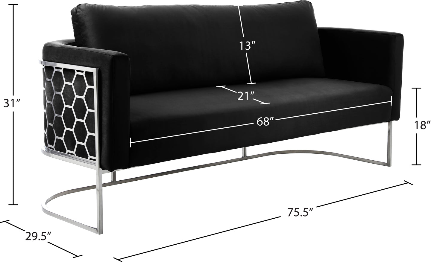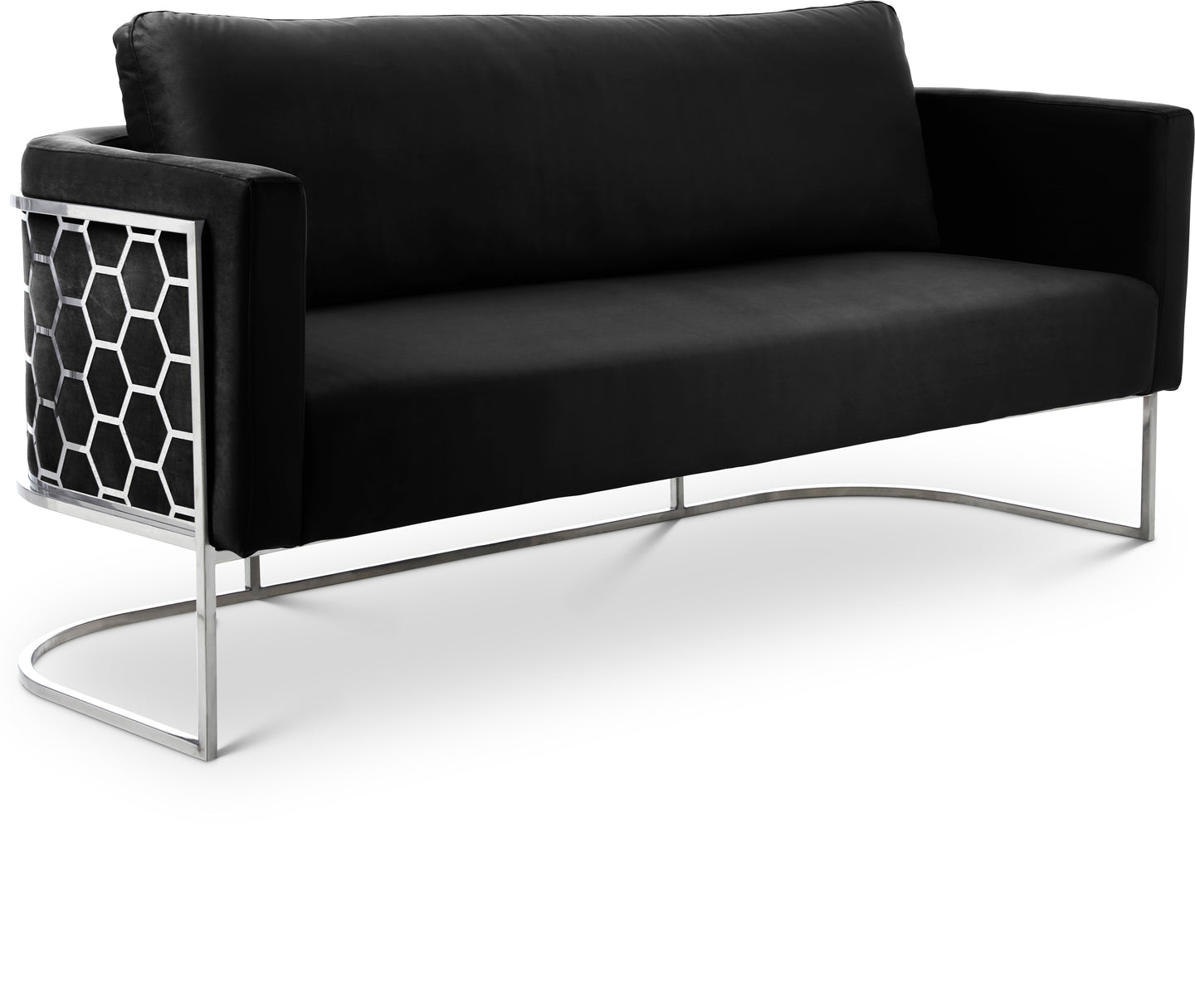 Bring modernity to the forefront with the addition of this Casa velvet chair. Destined to become the most-talked-about addition to your room, this eye-grabbing sofa is an attention-getter from all angles. Its soft black velvet upholstery is touchably soft and feels great against the skin, and its chrome iron metal frame featuring a honeycomb pattern lends the chair an up-to-the-minute feel. Pair it with other items in the Casa collection for a streamlined look.