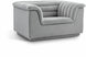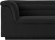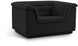 Give your room a much-needed rehab when you bring home this Cascade boucle fabric chair. The elegantly attention-grabbing design features a modern profile with curved arms deep horizontal channel tufting, so it wows from all angles. Upholstered in rich black boucle fabric, this seat quickly becomes everyone's favorite spot for curling up with a good book or smart device. Thick foam padding ensures a cozy, body-hugging experience. while you watch TV or just relax.