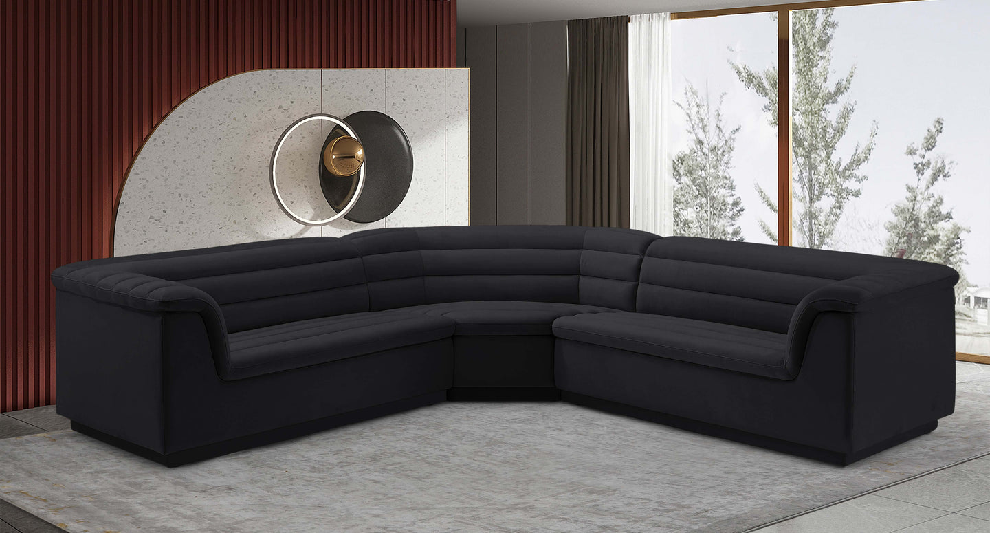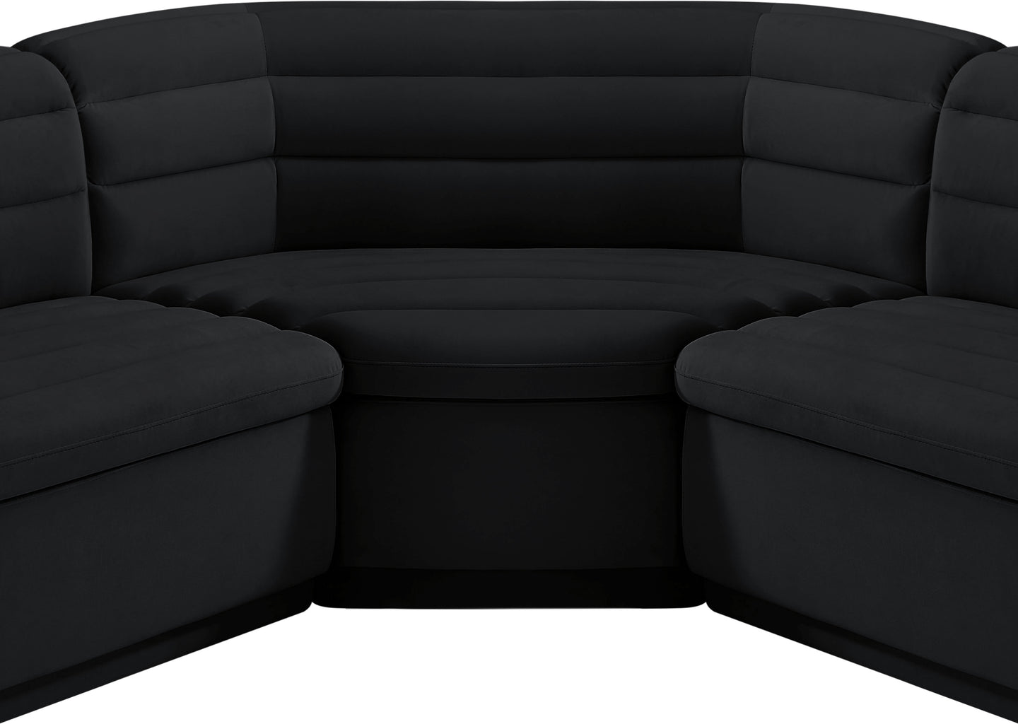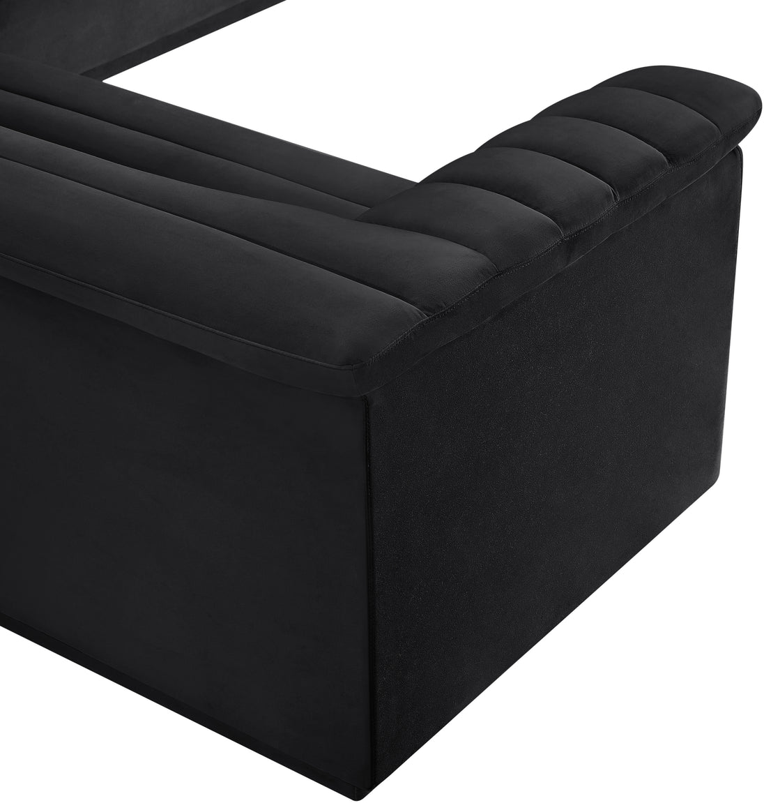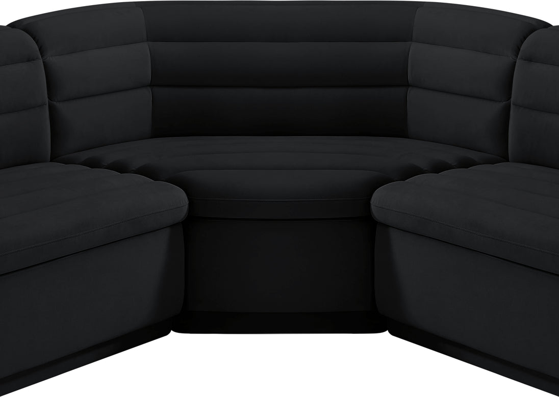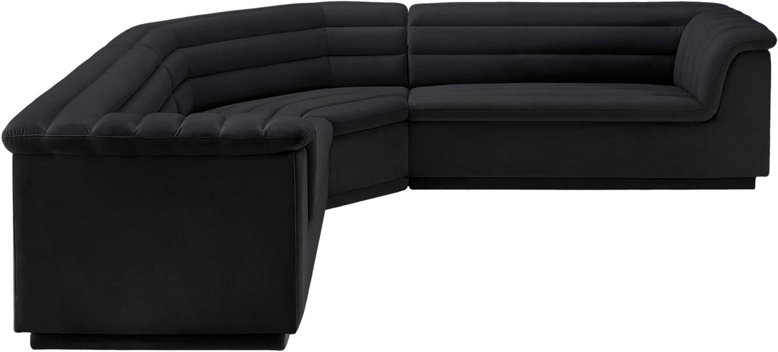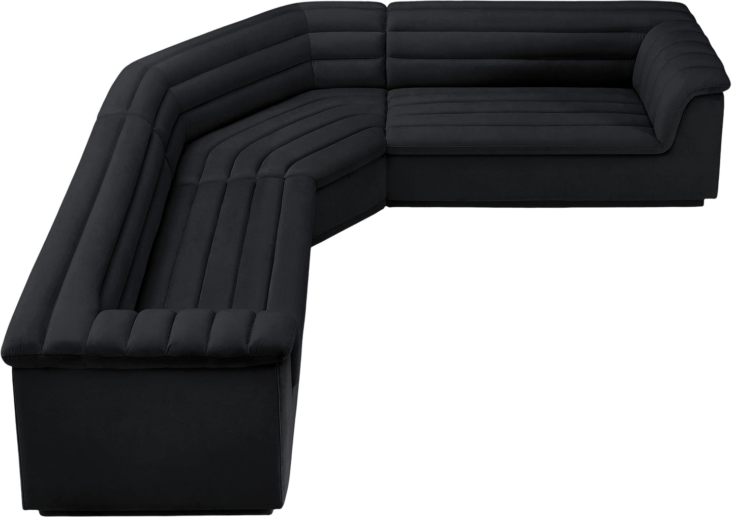 Give your room a much-needed rehab when you bring home this Cascade velvet modular sectional. The elegantly attention-grabbing design features a modern profile with curved arms deep horizontal channel tufting, so it wows from all angles. Upholstered in rich black velvet, this seat quickly becomes everyone's favorite spot for curling up with a good book or smart device. Thick foam padding ensures a cozy, body-hugging experience. while you watch TV or just relax.