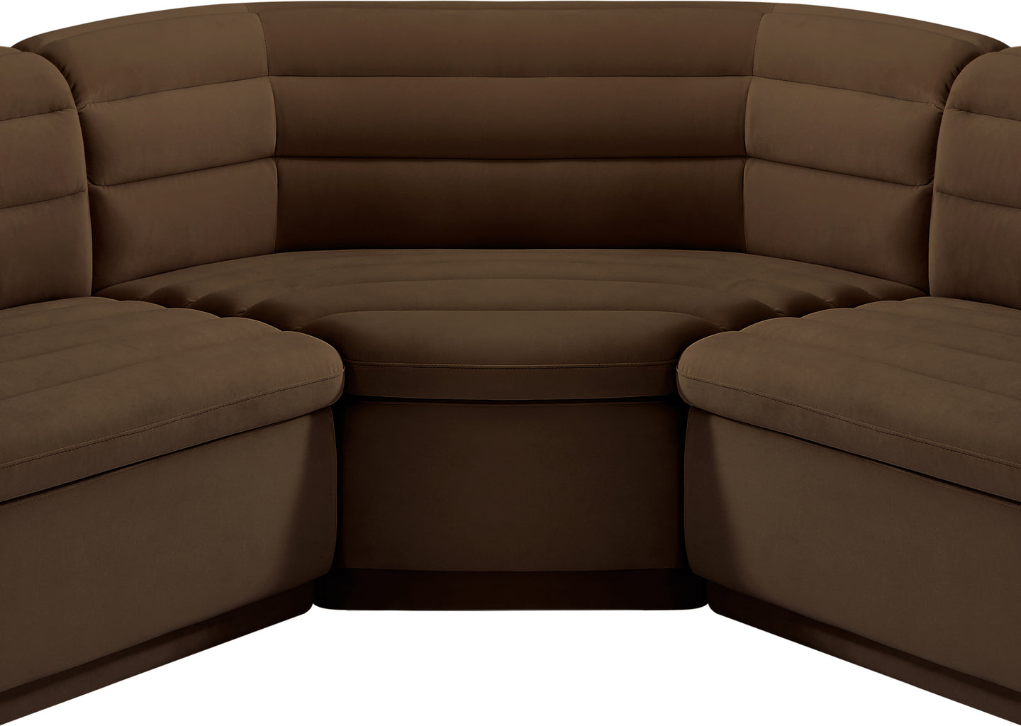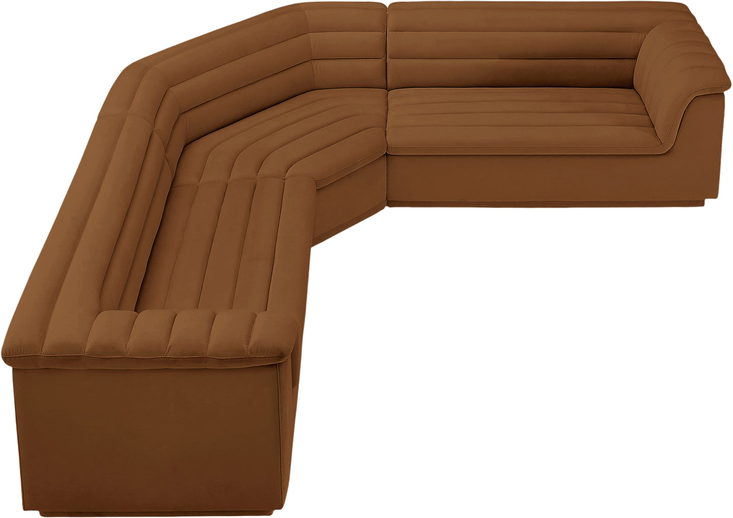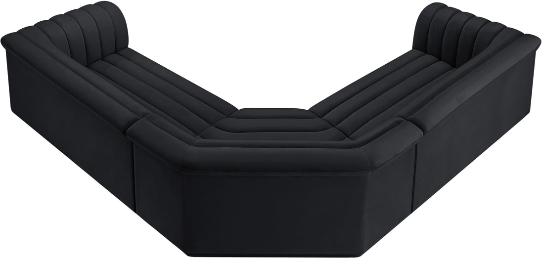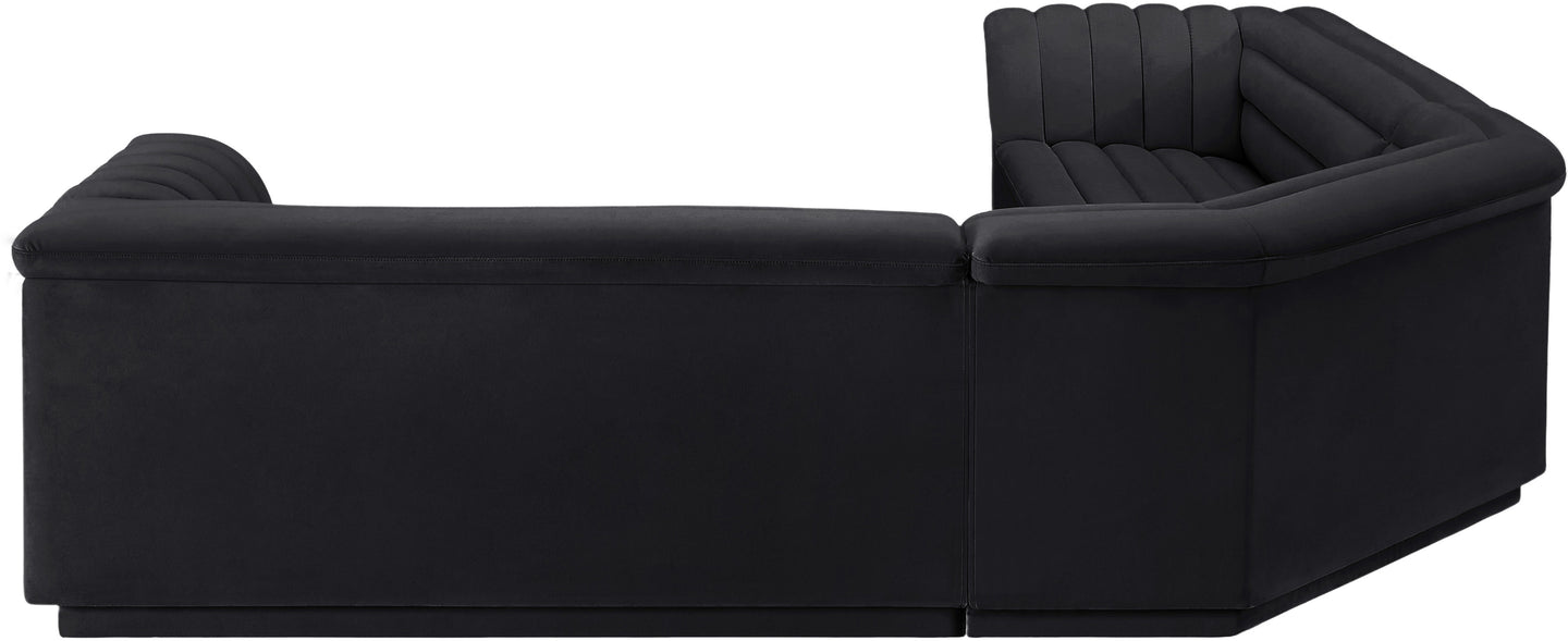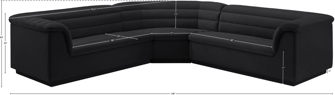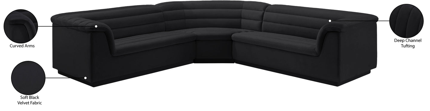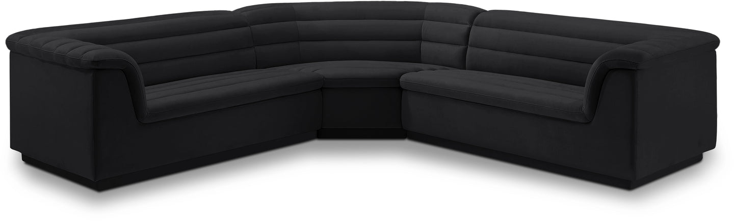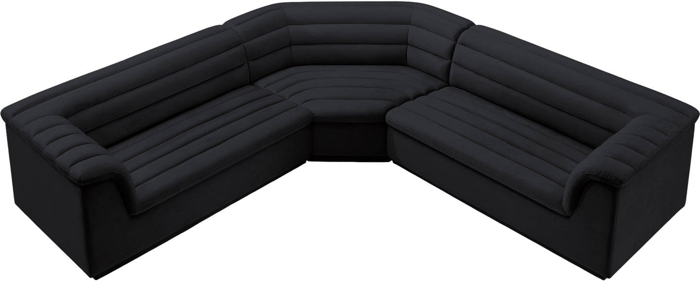 Give your room a much-needed rehab when you bring home this Cascade velvet modular sectional. The elegantly attention-grabbing design features a modern profile with curved arms deep horizontal channel tufting, so it wows from all angles. Upholstered in rich black velvet, this seat quickly becomes everyone's favorite spot for curling up with a good book or smart device. Thick foam padding ensures a cozy, body-hugging experience. while you watch TV or just relax.