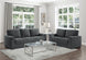 Product Description: A perfect addition to your casual living room, the Morelia Collection's decoratively flexible style allows for placement in myriad living room settings. Covered in charcoal-hued chenille, the profile of this love seat is defined by its nailhead trim, loose back cushions and track-style arms, creating a look that is perfect for your home's living room.