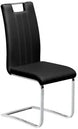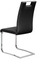 A curved chrome base supports the foam padded cushions, covered in a soft faux leather fabric. Ideal for any modern dining room available in a gorgeous white, black or gray colour.