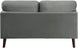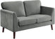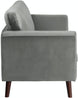 Product Description: Created for a modern space, the Tolley Collection's vibrant hue and streamlined profile will perfectly accent your home's living room. The love seat is supported by dark brown finished wood legs that complement the gray velvet upholstered cover.
