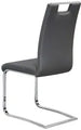 A curved chrome base supports the foam padded cushions, covered in a soft faux leather fabric. Ideal for any modern dining room available in a gorgeous white, black or gray colour.