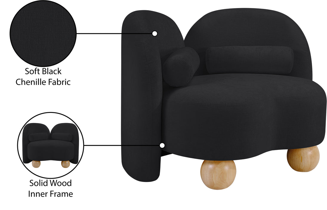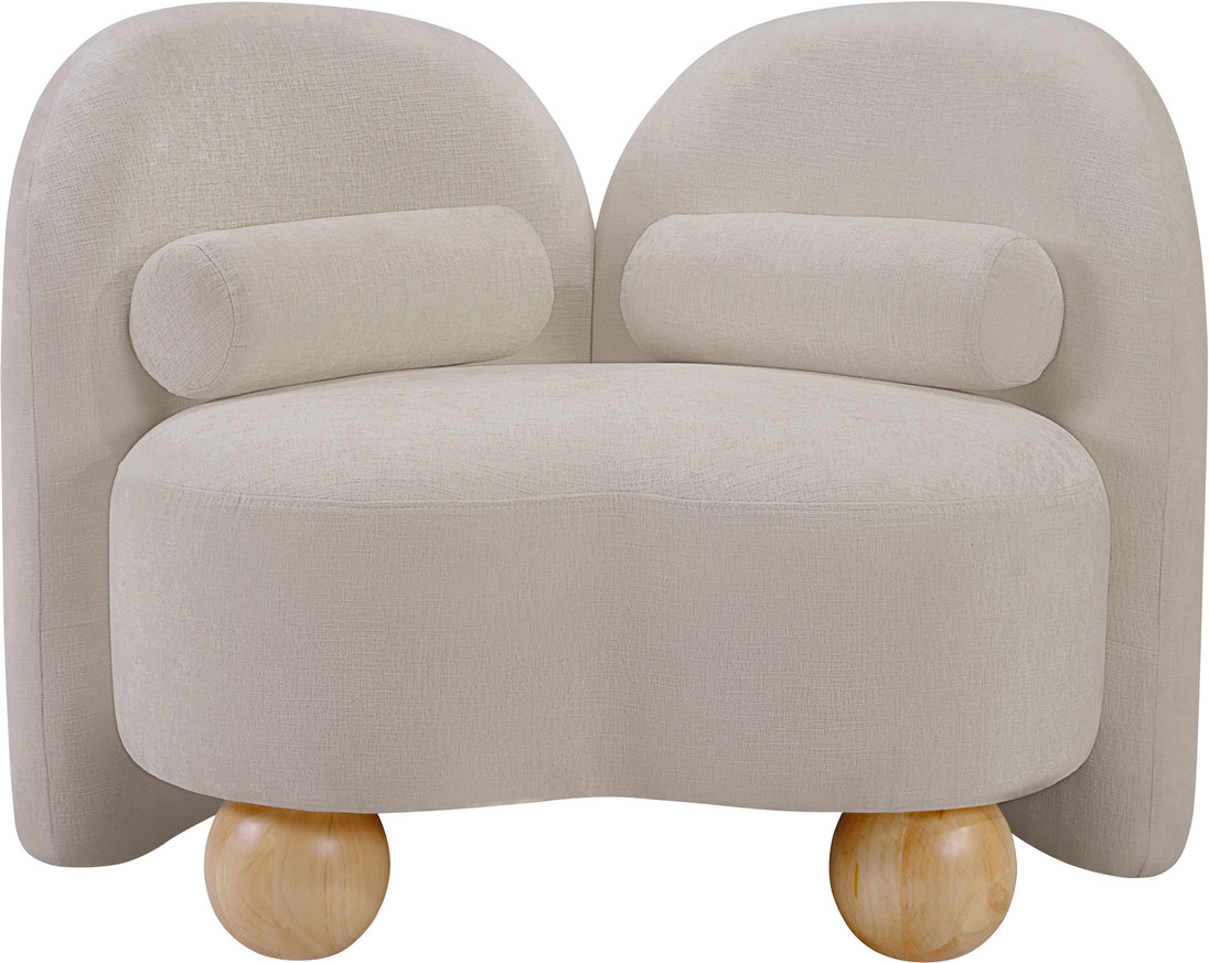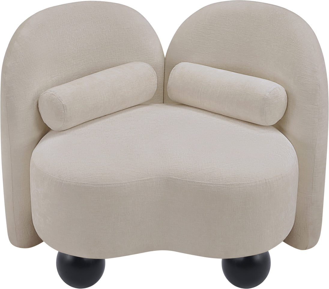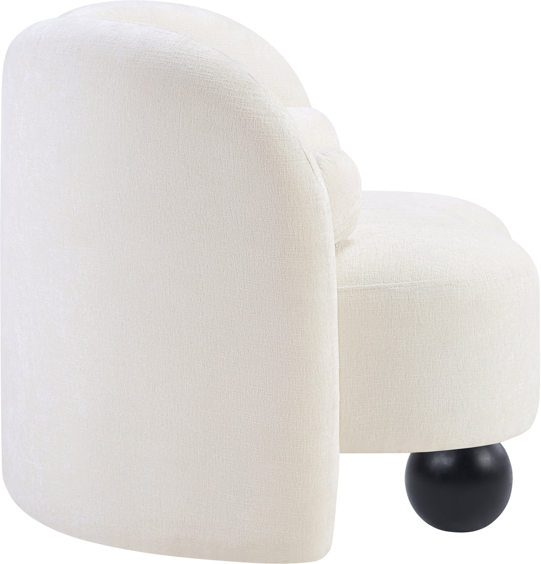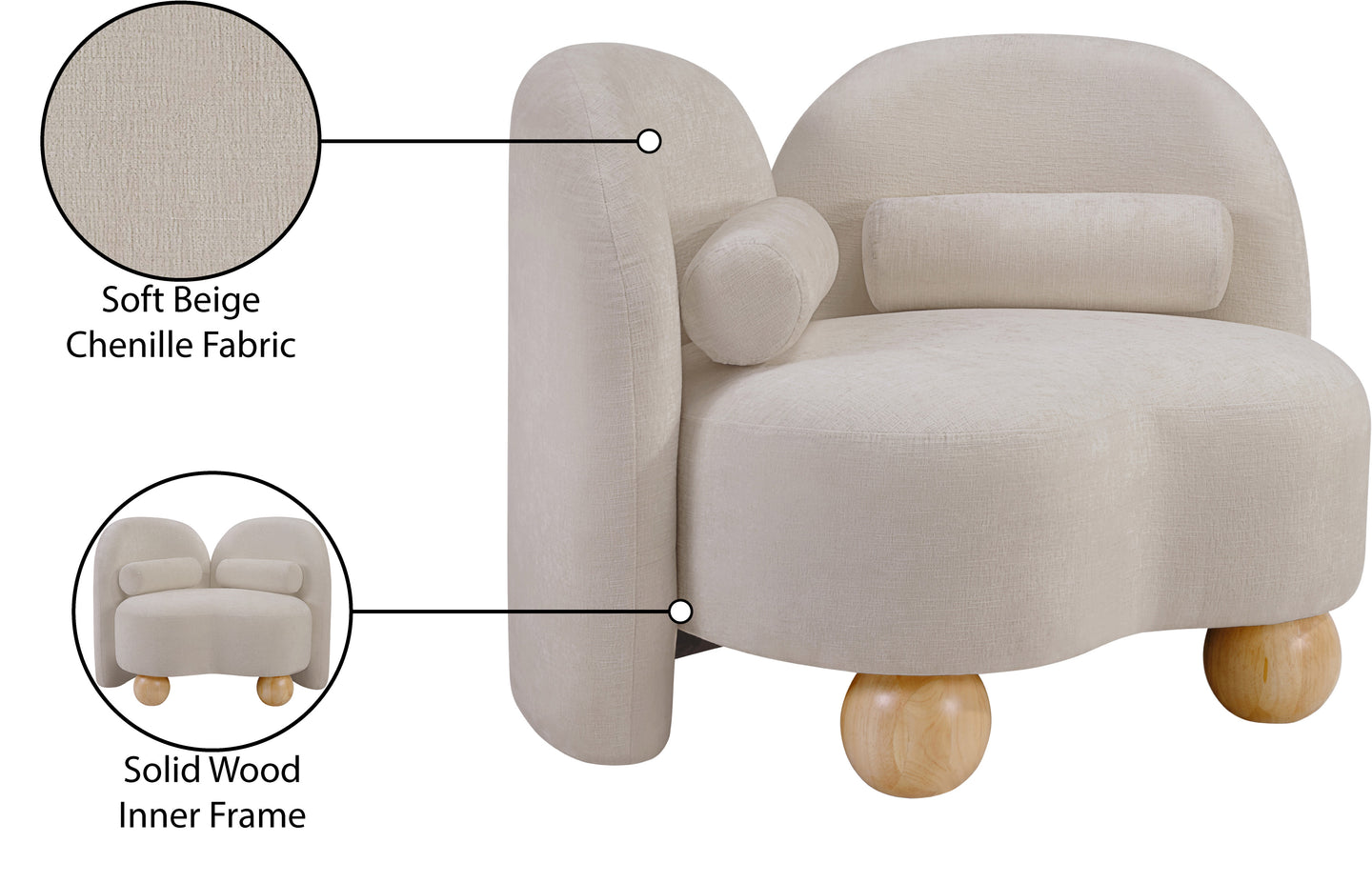 A cloud-like oasis of comfort, the Daphne beige chenille chair is a modern sensation. Its plush upholstery invites you to sink in and relax, while the curved design offers both support and opulence. The chair's unique silhouette is complemented by a choice of black or natural wooden legs, allowing you to customize it to your personal taste. Whether you're looking for a stylish accent piece or a comfortable spot to unwind, the Daphne is the perfect choice.