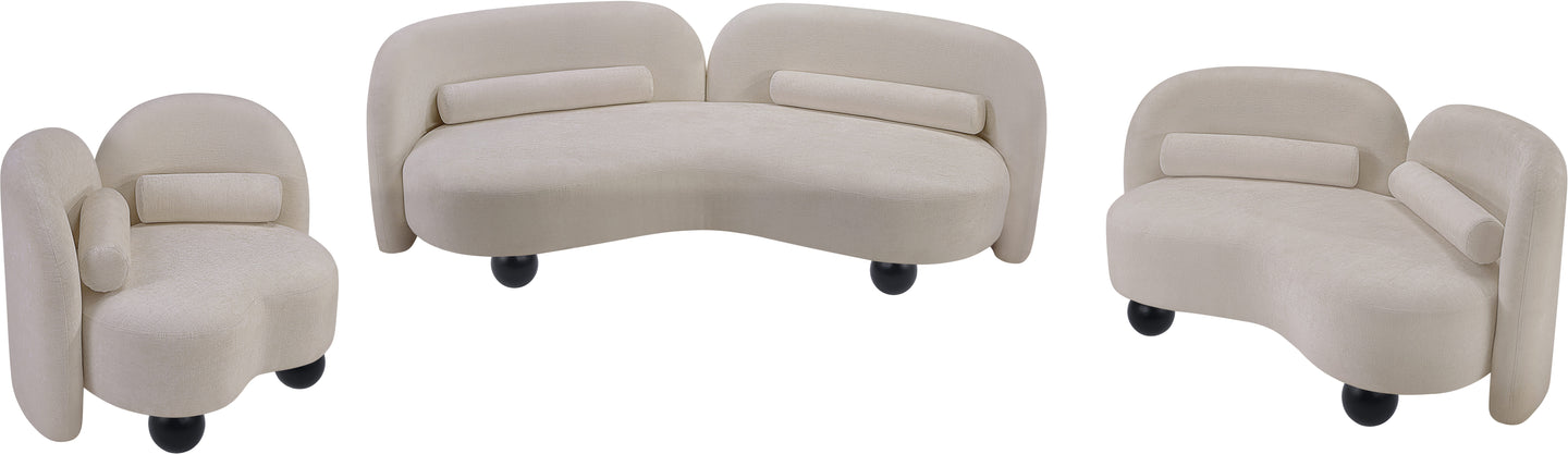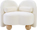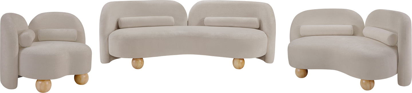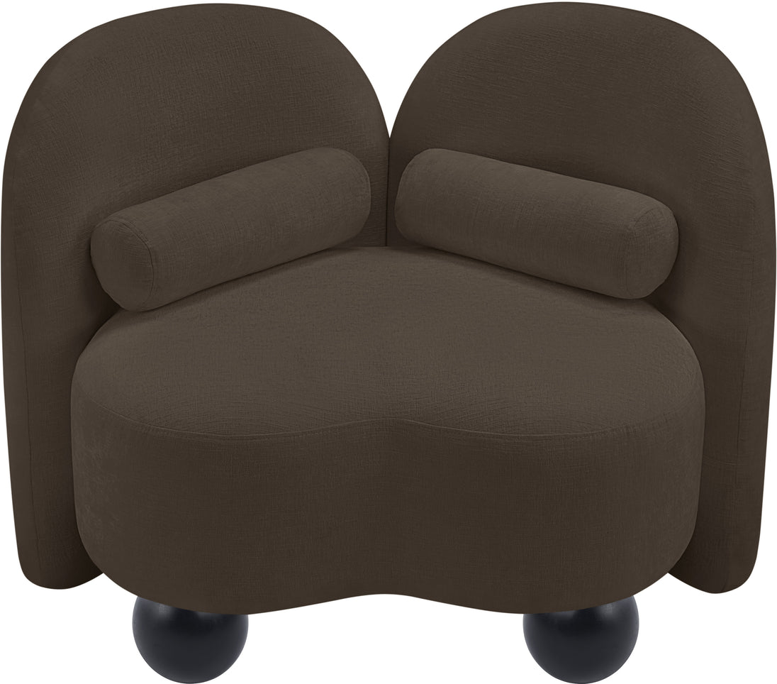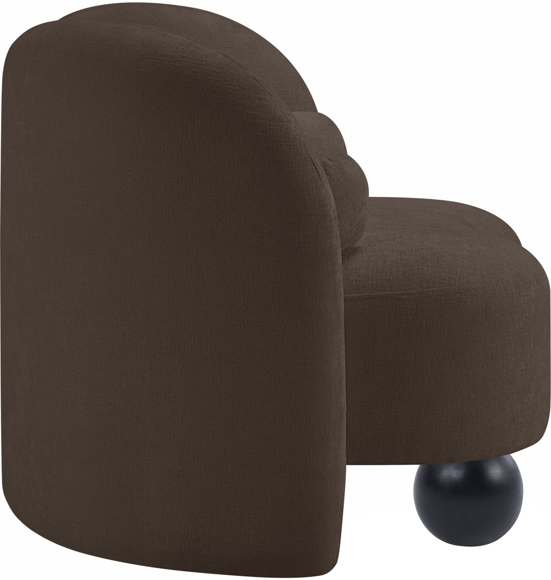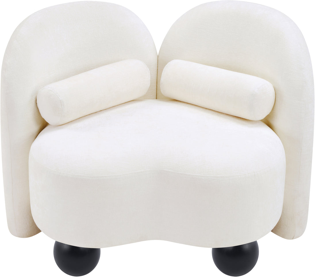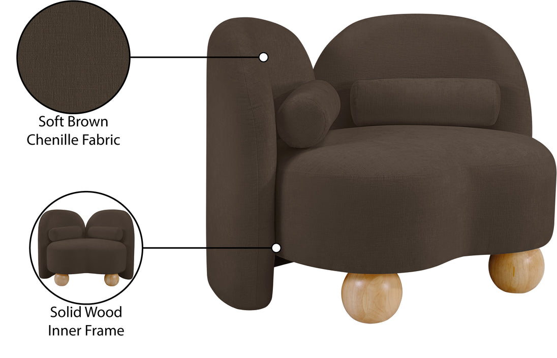 A cloud-like oasis of comfort, the Daphne beige chenille chair is a modern sensation. Its plush upholstery invites you to sink in and relax, while the curved design offers both support and opulence. The chair's unique silhouette is complemented by a choice of black or natural wooden legs, allowing you to customize it to your personal taste. Whether you're looking for a stylish accent piece or a comfortable spot to unwind, the Daphne is the perfect choice.