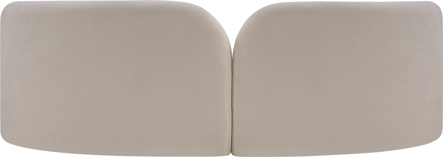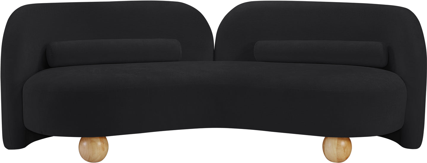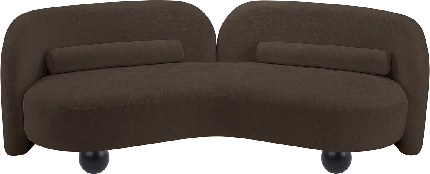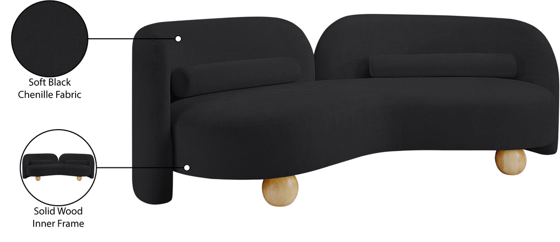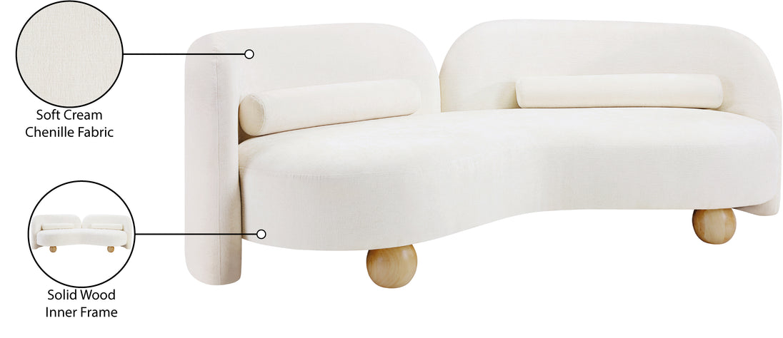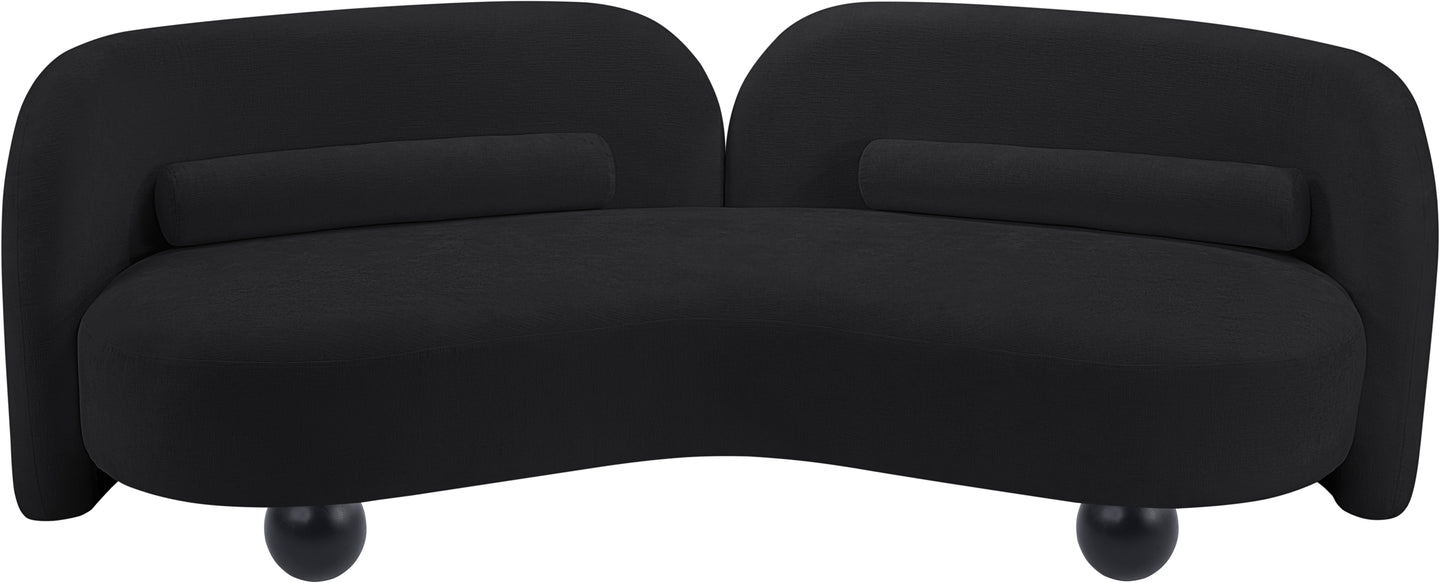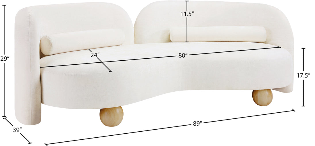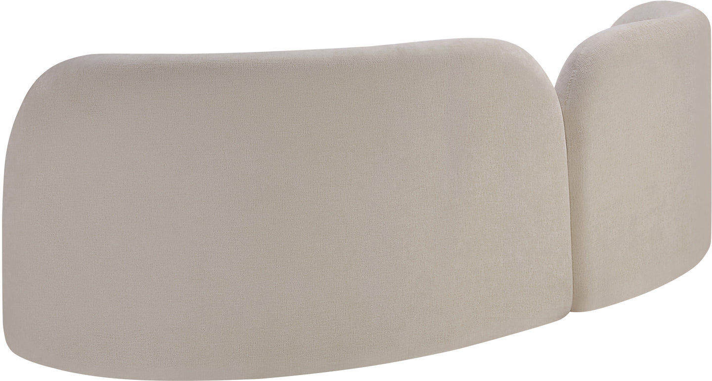 A cloud-like oasis of comfort, the Daphne beige chenille sofa is a modern sensation. Its plush upholstery invites you to sink in and relax, while the curved design offers both support and opulence. The sofa's unique silhouette is complemented by a choice of black or natural wooden legs, allowing you to customize it to your personal taste. Whether you're looking for a stylish accent piece or a comfortable spot to unwind, the Daphne sofa is the perfect choice.