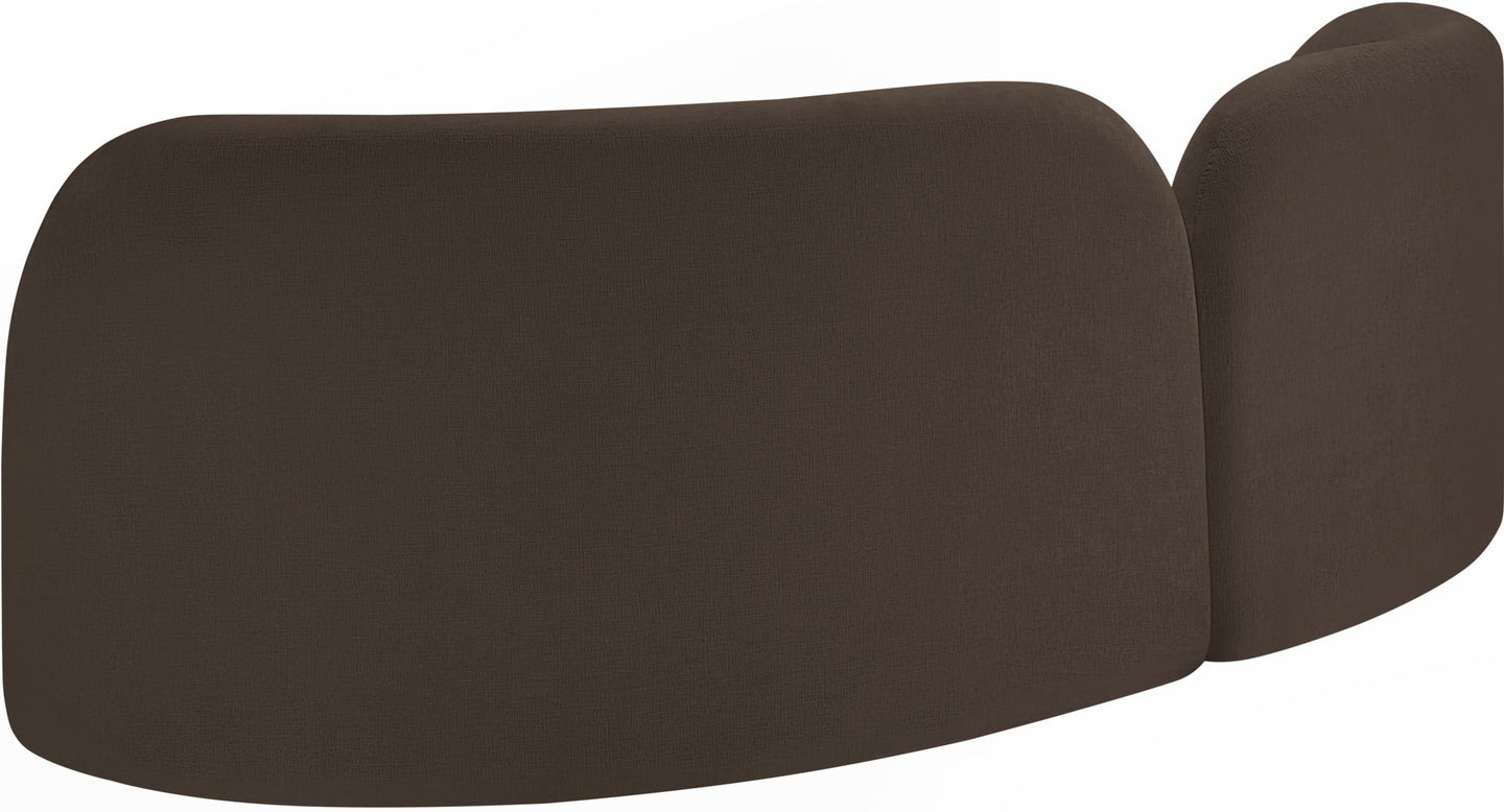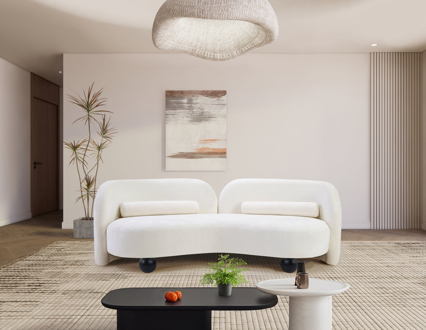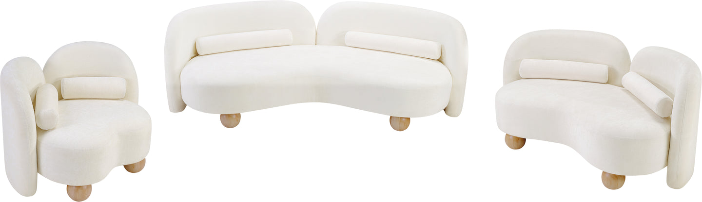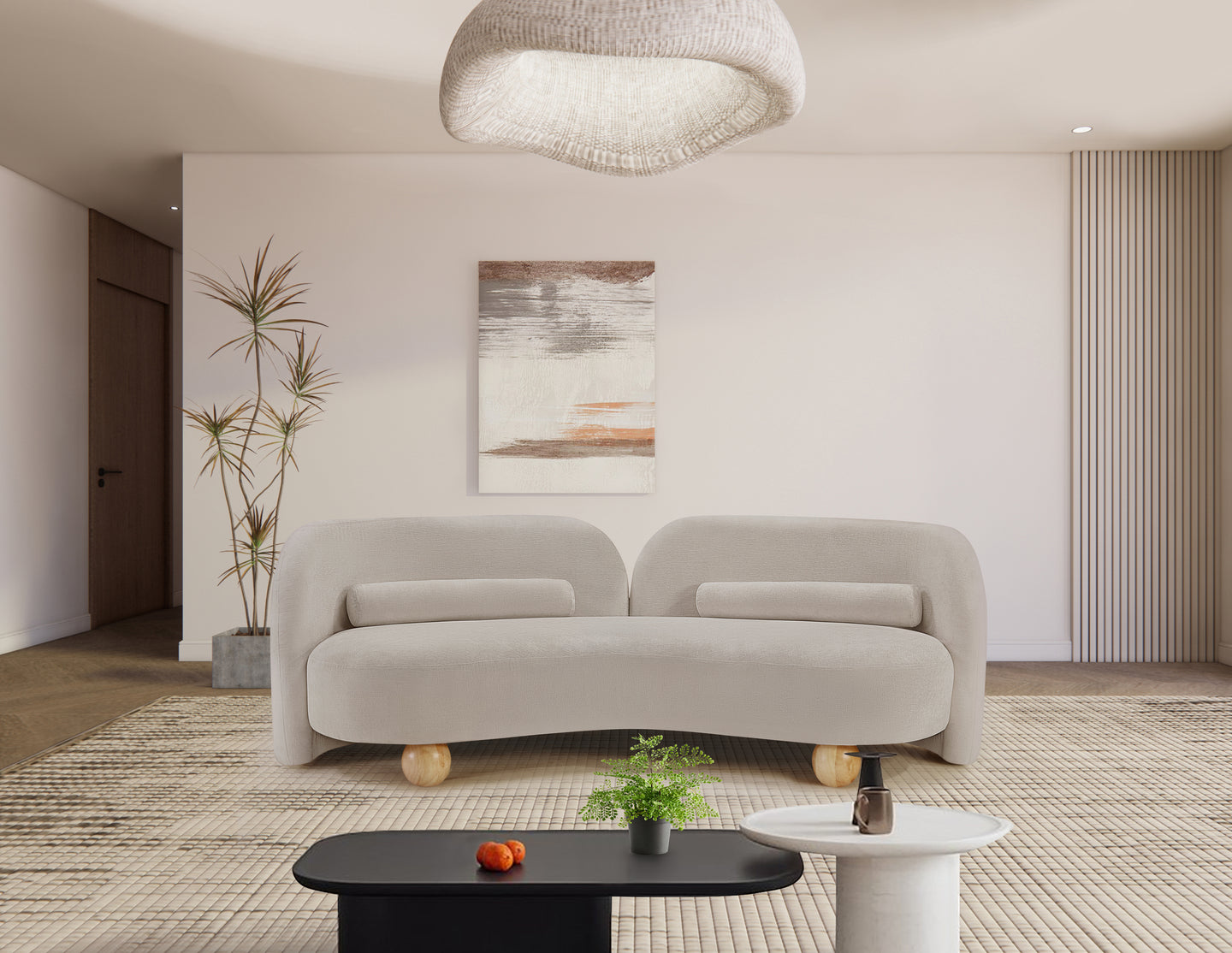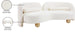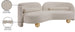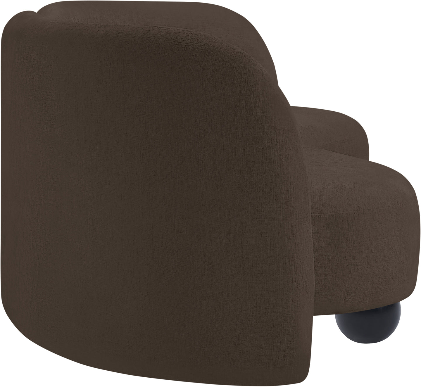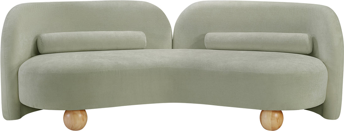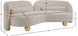 A cloud-like oasis of comfort, the Daphne beige chenille sofa is a modern sensation. Its plush upholstery invites you to sink in and relax, while the curved design offers both support and opulence. The sofa's unique silhouette is complemented by a choice of black or natural wooden legs, allowing you to customize it to your personal taste. Whether you're looking for a stylish accent piece or a comfortable spot to unwind, the Daphne sofa is the perfect choice.
