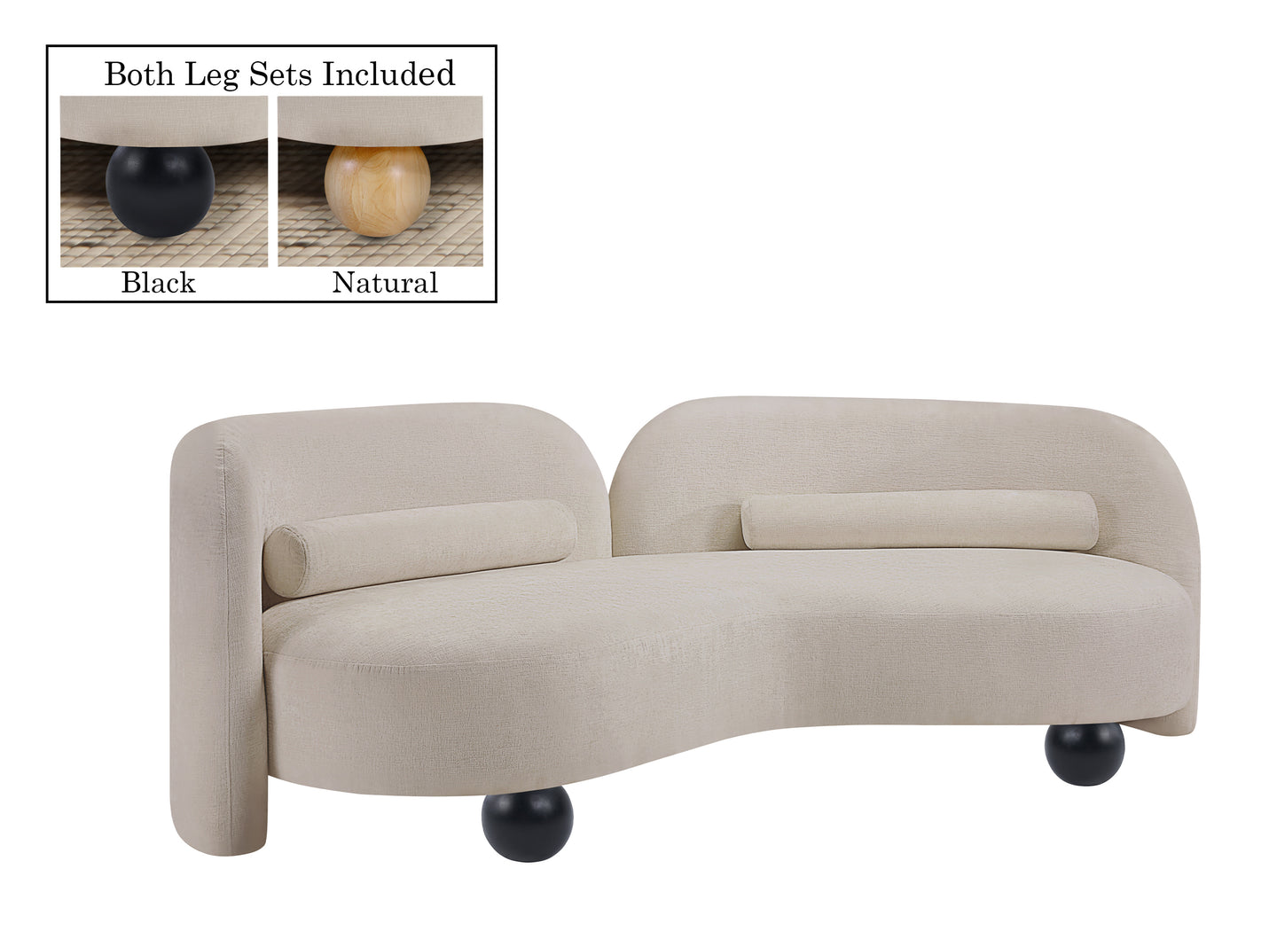 - Includes Both Natural and Black Finish Solid Wood Ball Legs For Customer To Choose