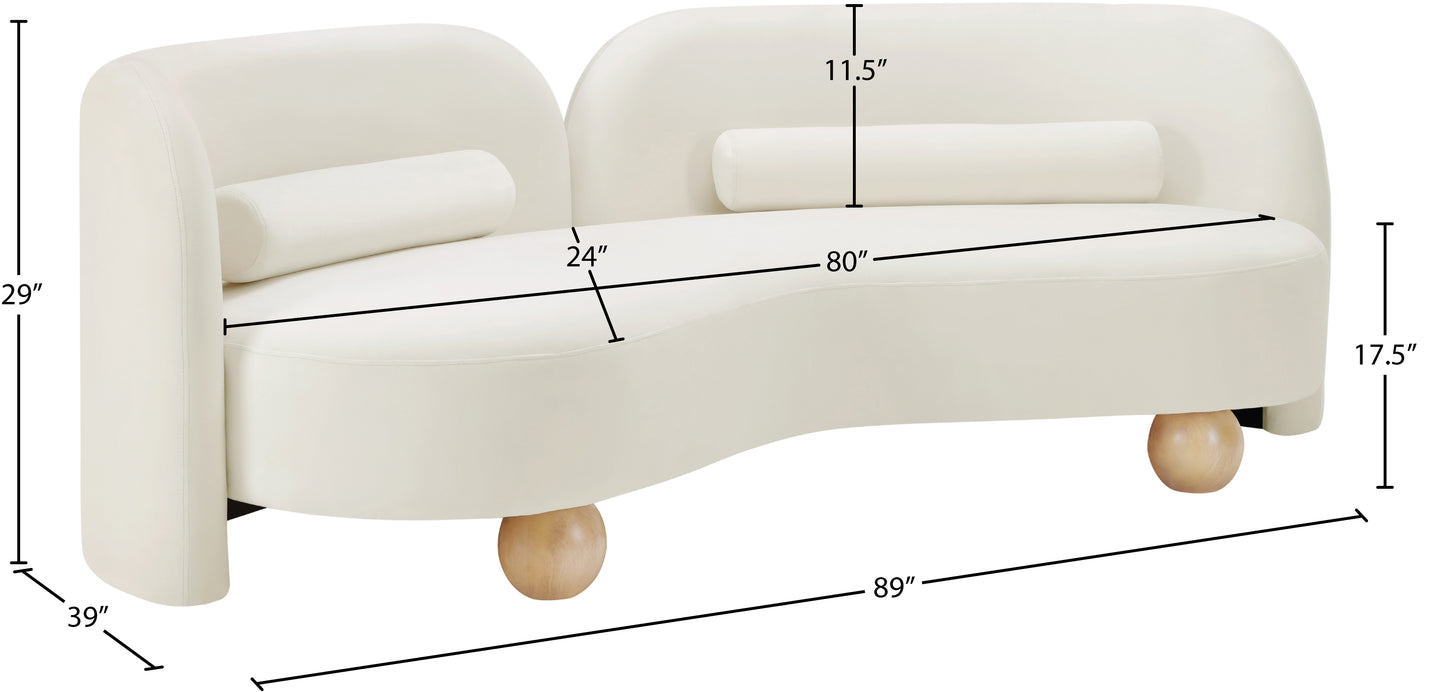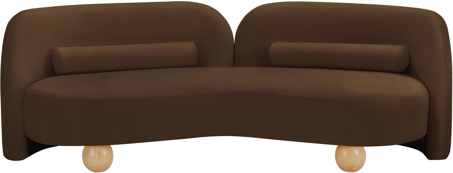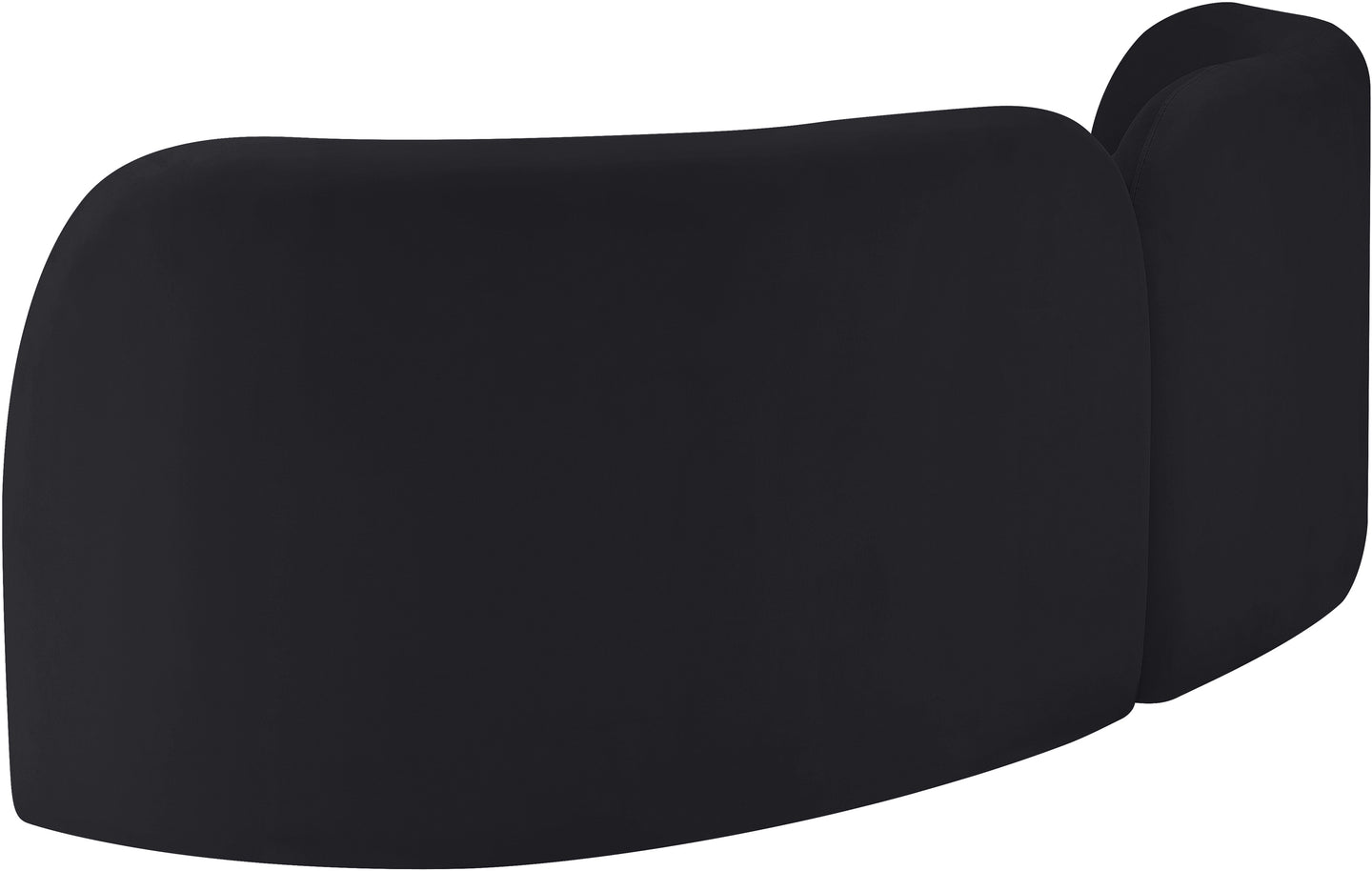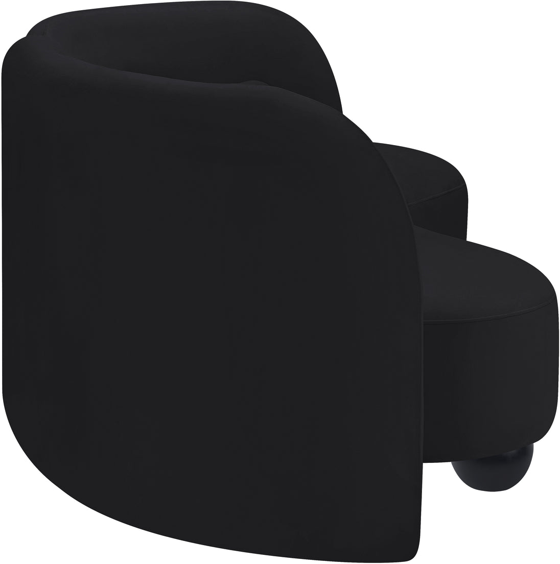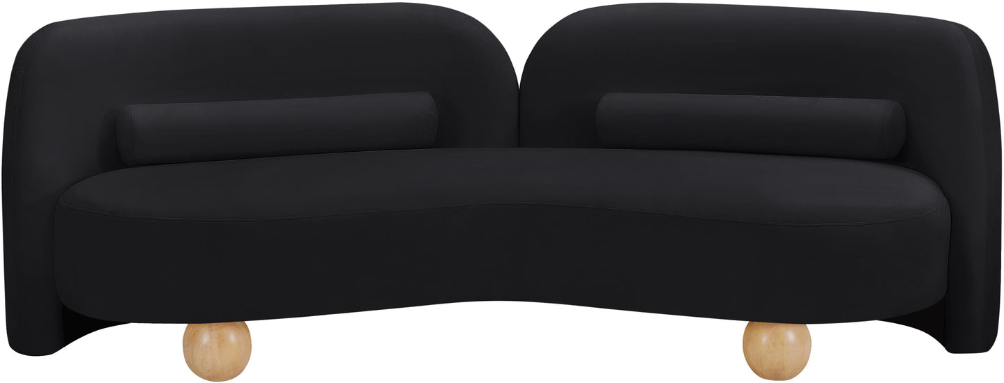A cloud-like oasis of comfort, the Daphne black velvet sofa is a modern sensation. Its plush upholstery invites you to sink in and relax, while the curved design offers both support and opulence. The sofa's unique silhouette is complemented by a choice of black or natural wooden legs, allowing you to customize it to your personal taste. Whether you're looking for a stylish accent piece or a comfortable spot to unwind, the Daphne sofa is the perfect choice.