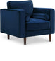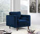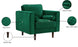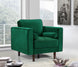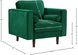 Stretch out and relax on this handsome Emily chair. This Meridian Furniture chair features wooden legs and a sturdy frame, so it's built for the long haul. Its vibrant green velvet upholstery is a jewel tone that's simply stunning and that adds a pop of color to your day. The chair's back cushions are plump and filled with premium material to cradle you in comfort, and it comes with two roll-style pillows for helping you prop up and unwind.
