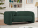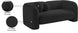 The Emory Loveseat draped in the rich black boucle fabric is a sight to behold. Its captivating elegance is matched only by its comfort, making it the epitome of style and relaxation. The texture of the fabric adds depth and dimension to the loveseat, making it a stunning addition to any room. With its sleek design and cozy feel, the Emory Loveseat is the perfect place to unwind and indulge in a moment of pure luxury.