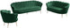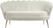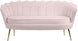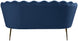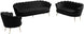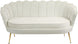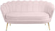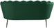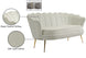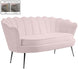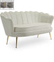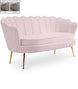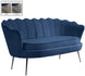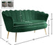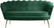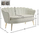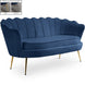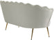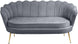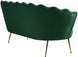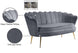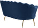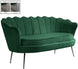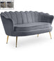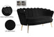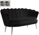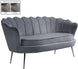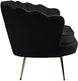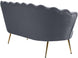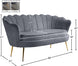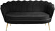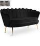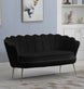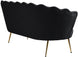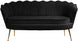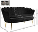 Turn heads in an instant when you add this Gardenia velvet loveseat to your room. This attention-demanding loveseat features a shell-shaped back with deep channel tufting for added textural appeal. The round seat cushion is deep and generously sized, so you have wiggle room to get comfortable. Soft black velvet upholstery covers the entire loveseat except for its legs, which are made from chrome for durability and finished in gold for a touch of glam.