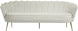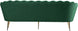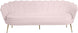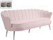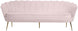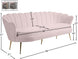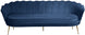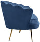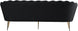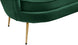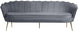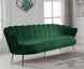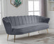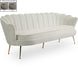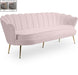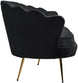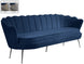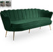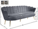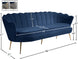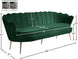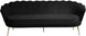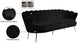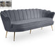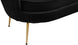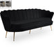 Turn heads in an instant when you add this Gardenia velvet sofa to your room. This attention-demanding sofa features a shell-shaped back with deep channel tufting for added textural appeal. The round seat cushion is deep and generously sized, so you have wiggle room to get comfortable. Soft black velvet upholstery covers the entire sofa except for its legs, which are made from chrome for durability and finished in gold for a touch of glam.