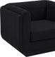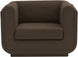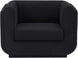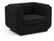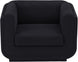 Upgrade your space with this black Kimora linen textured fabric chair that offers a touch of luxury that's as cozy as it is chic. The tactile softness of the fabric adds to its appeal, ensuring that you not only sit in style but in comfort as well. The rounded arms add a contemporary touch and ensure a snug seating experience for relaxing with your favorite book or watching TV. Its sleek and versatile modern design complements any decor, making it a fantastic addition to your room.