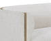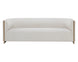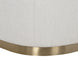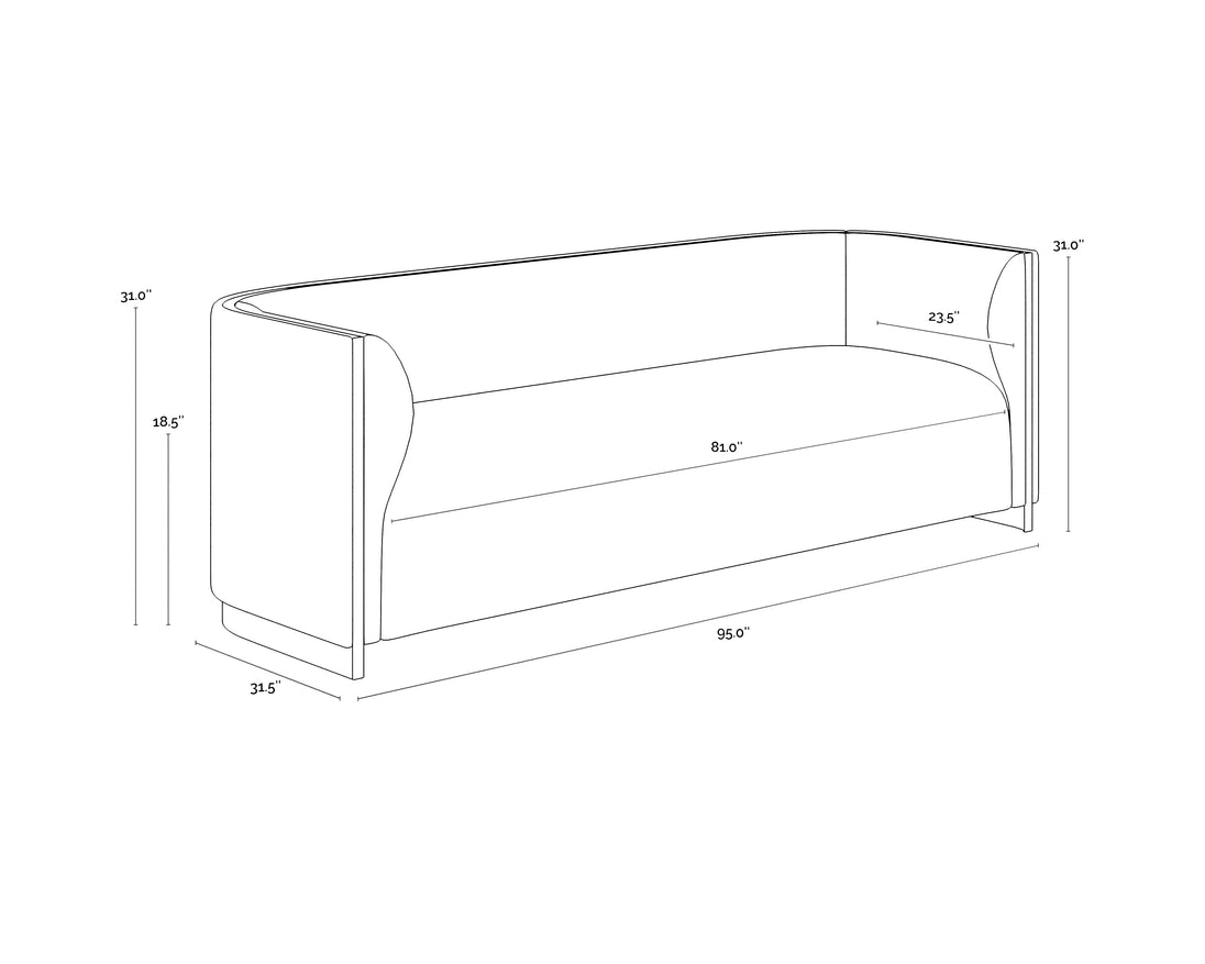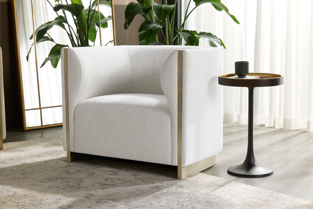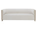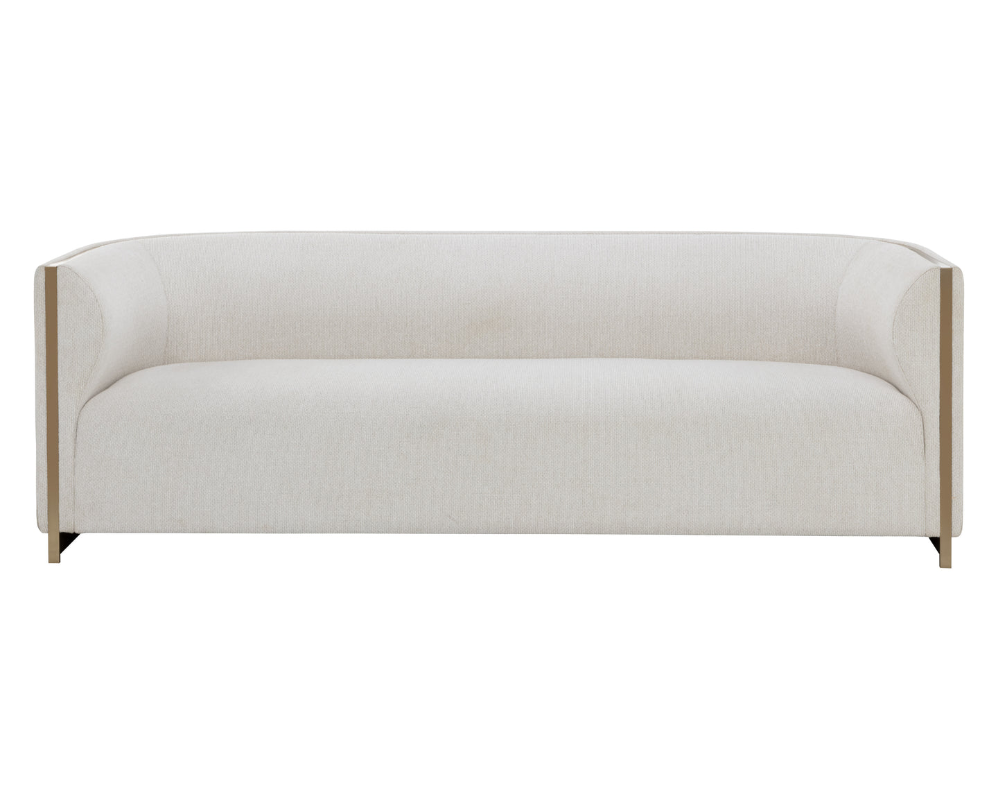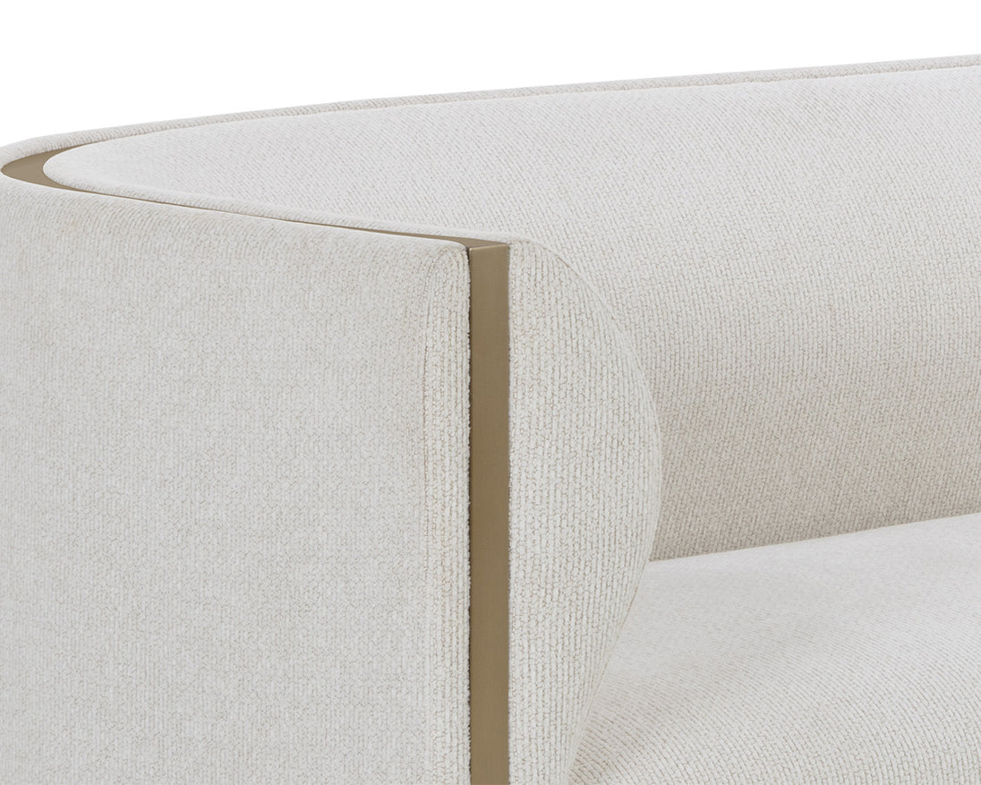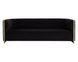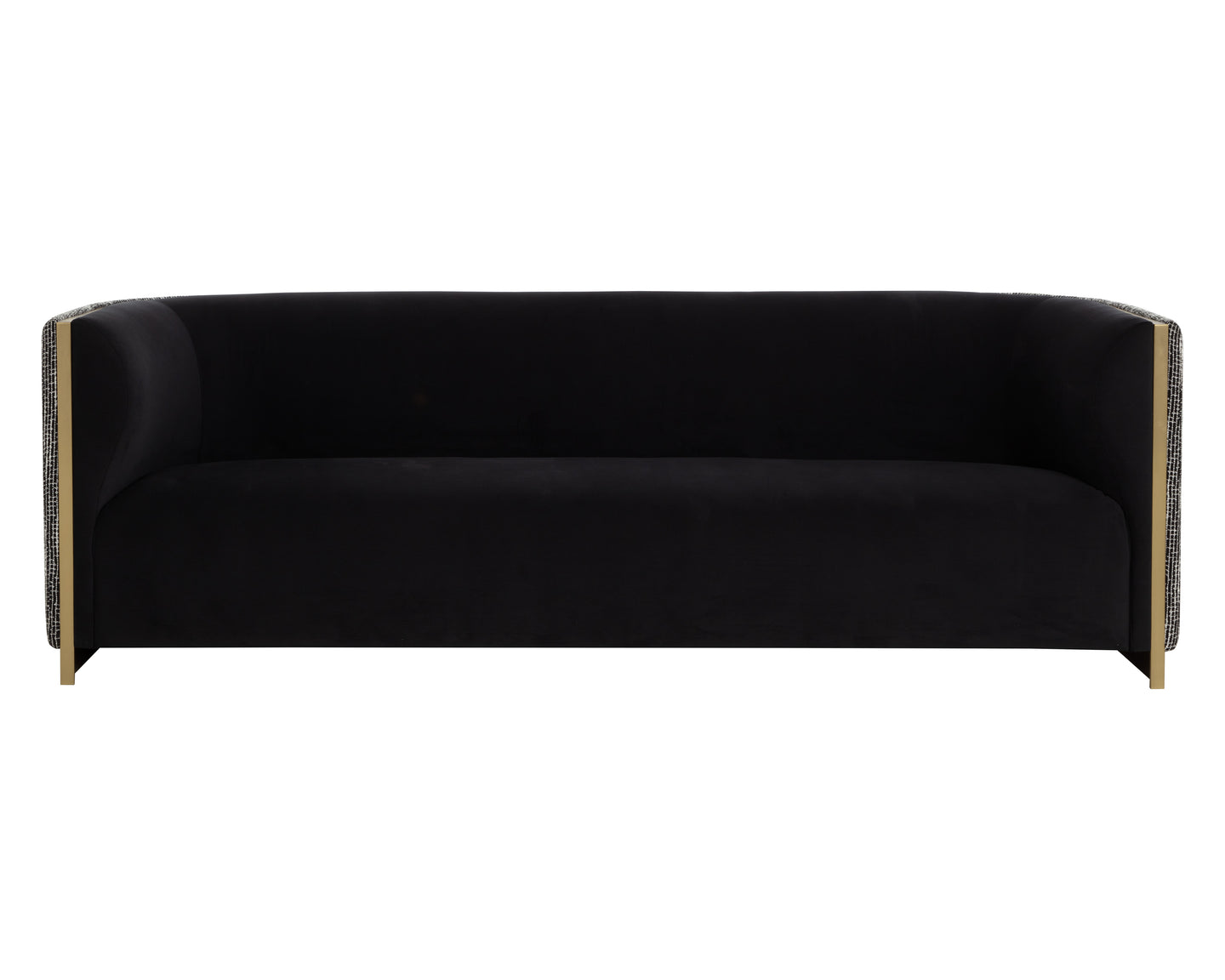 The Larron Sofa balances mixed materials to bring this contemporary design to life. Expertly upholstered in a two-tone combination of abbington black and hobbes night fabrics for a mix of contrasting textures. Gold stainless steel metal inlay and padded curves accentuate the chair's curved silhouette.