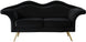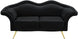 Put your best pucker forward with this Lips velvet loveseat. So named because of its beautiful, pouty shape, this Lips loveseat makes a stunning addition to your living room. Soft black velvet upholstery covers every inch of this striking loveseat, giving it a sumptuous boudoir-inspired feel. Gold medal legs support the loveseat, adding a touch of refinement while allowing clearance beneath it for cleaning.
