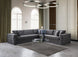 The Livingston 3-piece tufted sectional, crafted in Turkey, features a luxurious grey velvet upholstery. This sectional boasts a spacious design, measuring approximately 120 inches by 120 inches, providing ample seating for your living space. The tufted detailing adds an elegant touch, making it a sophisticated and comfortable addition to any home decor.
