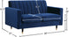 Cozy up to the comfort of this Lola Grey Velvet Loveseat. Its rich color adds a jolt of excitement and fun to your space, shaking things up in a neutral-colored room. The back is channel tufted for a beautiful, contemporary look and to help the back cushioning maintain its welcoming loft. Elegant slant-tipped black legs with gold tips lend this loveseat a charmingly modern finish and provide a sturdy foundation. Add it on its own, or add the matching sofa and chair for a coordinated look.