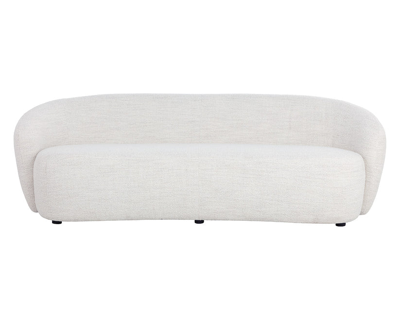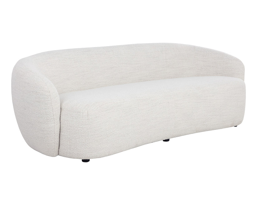 The Lorne Sofa features a minimal silhouette that will fit into any modern living space. Crafted with luxuriously textured merino pearl boucle fabric with padded curves that provide unparalleled comfort.